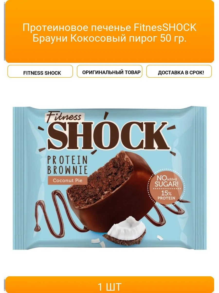 | Комплектация | Протеиновое печенье FitnesSHOCK Брауни Кокосовый пирог 50 гр |