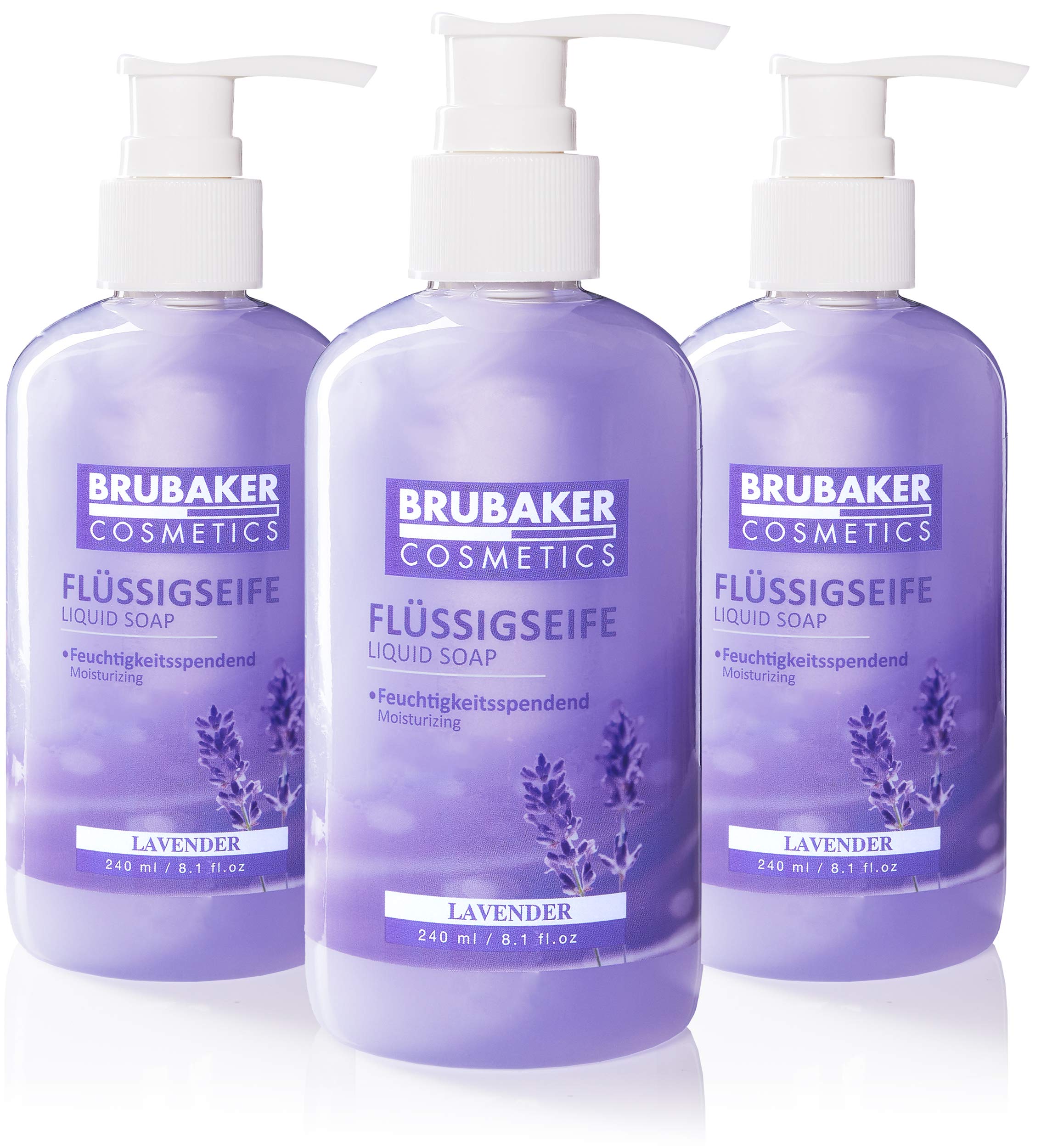BRUBAKER Cosmetics - Savon Liquide - Lavande - Pour des Mains Hygiéniquement Propres - Formule Extra Douce et Hydrate - (Lot de 3 x 240 ml)
