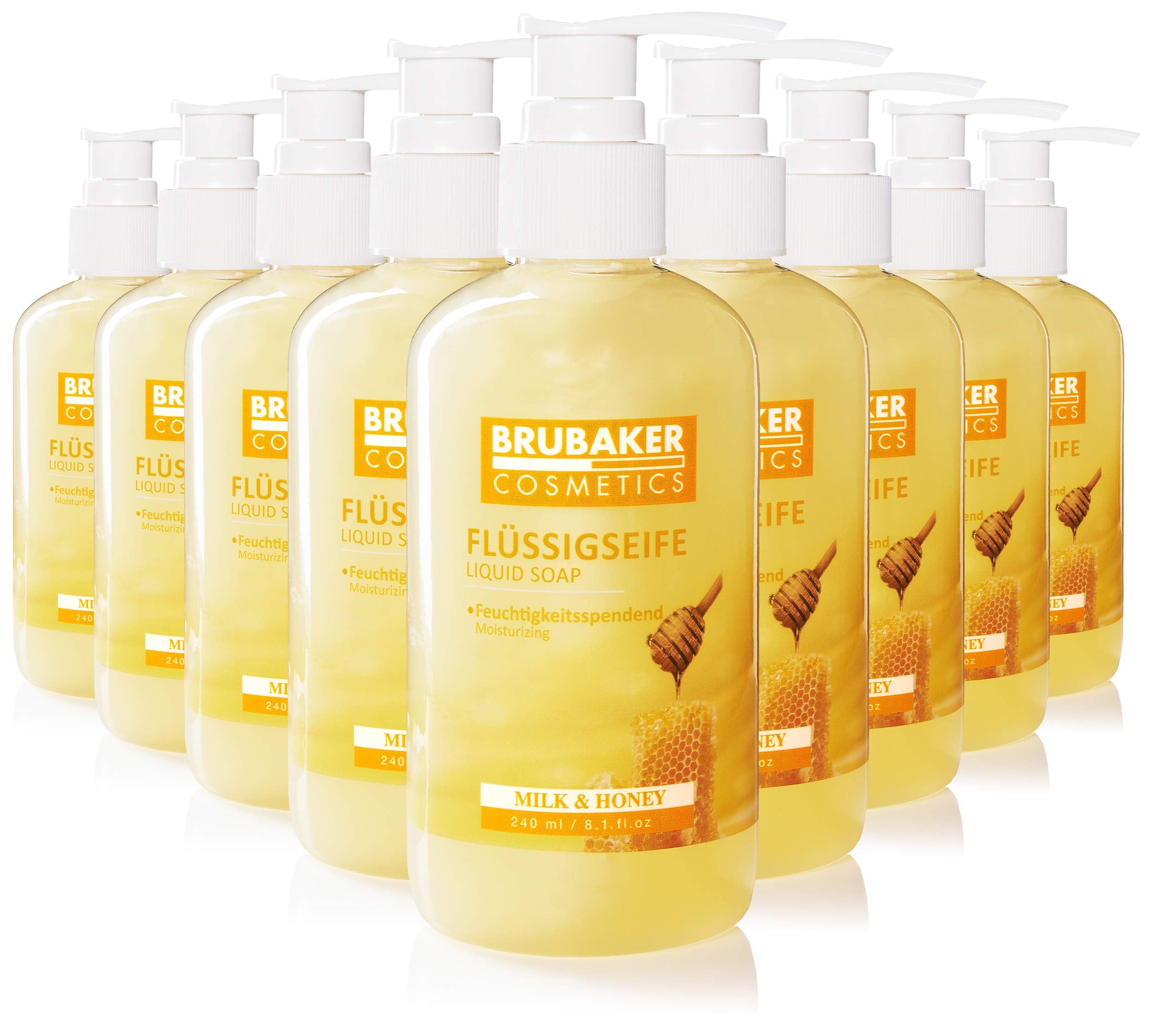 BRUBAKER Cosmetics - Savon Liquide - Lait Miel - Pour des Mains Hygiéniquement Propres - Formule Extra Douce et Hydrate - (Lot de 10 x 240 ml)