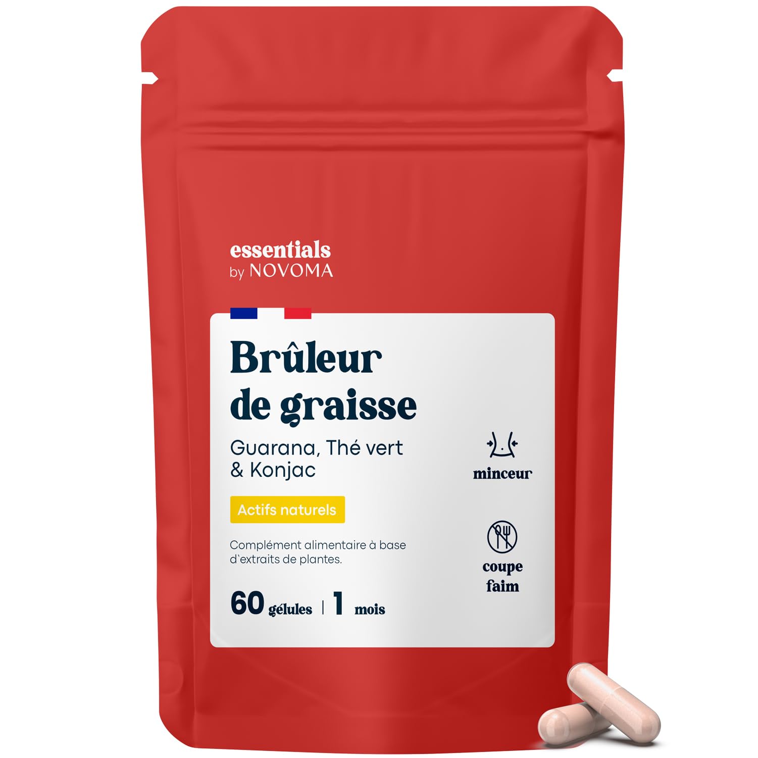 Bruleur de Graisse Puissant Formule Minceur avec Guarana Th Vert & Konjac Coupe Faim Naturel Compl ment Perte de Poids Cure de 1 mois 60 G lules Fabriqu en France Essentials by Novoma Br leur de Graisse