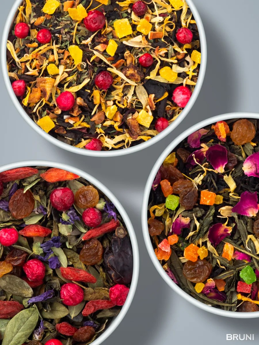 The Bruni gift tea set is a wonderful choice for connoisseurs of exquisite flavors and aromas. This set includes three types of tea: black, green, and hibiscus, each with its own unique flavor and aroma. Bruni tea is made from natural ingredients such as blackcurrant, goji berries, rose hips, rose petals, and many others, without the addition of GMOs, preservatives, or sugar. This set makes a wonderful gift for friends and family, and a wonderful addition to any tea party.