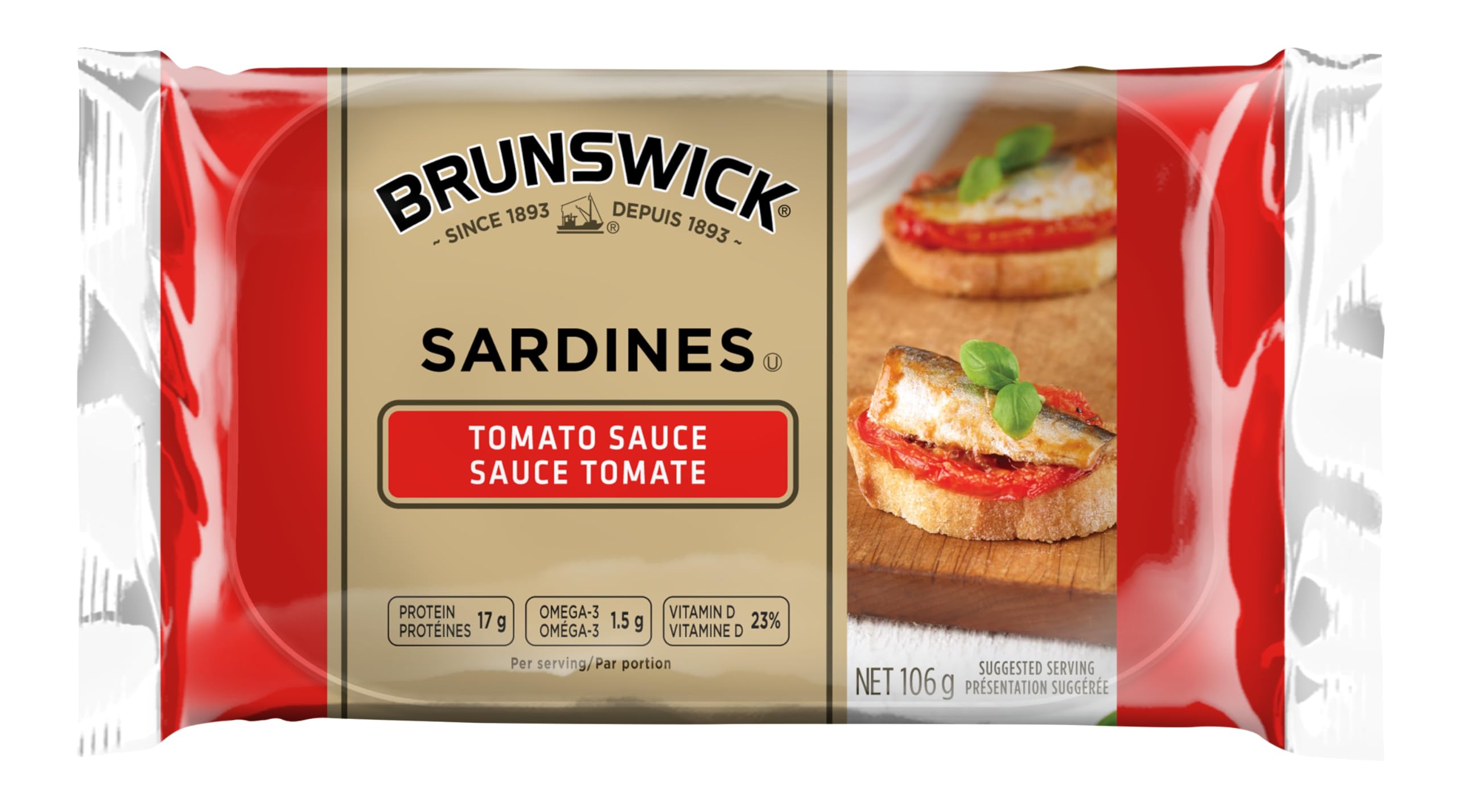 BRUNSWICK canned sardines contain many of the essential amino acids that are important in a healthy diet. Sardines are a source of omega-3 essential fatty acids, so they're smart eating. Plus, they contain no preservatives, no artificial flavours, no artificial colours, no hydrogenated fats, no hydrolysed plant proteins or palm oils.SUSTAINABILITY: Brunswick Sardines are wild and traceable Trace My Catch tracks the source of sardines from catch to can using the product can code, to verify our supply chain is legally harvested and meets all our sustainable sourcing commitments. RECIPES: Enjoy Keto recipes with Brunswick Sardines on its own as a healthy snack or in easy and simple recipes like sandwiches, salads, rice, pasta or noodles, wraps, dips, tacos, casseroles, and fish cakes. PANTRY STAPLE: Load your pantry with our versatile canned fish products They are budget-friendly Stock your pantry so you are never out of this healthy basic for breakfast, brunch, lunch, dinner, appetizers and snacks. EXCELLENT SOURCE OF PROTEIN: With 17g of protein per 106g serving Contains omega-3 polyunsaturates Contains iron and potassium High in vitamin D and calcium. SARDINES IN TOMATO SAUCE: Brunswick Sardines in Tomato Sauce 106g contains canned sardines in a tangy tomato sauce Comes in an Easy Open ring pull tab lid and a BPA Free can Quality you can trust.