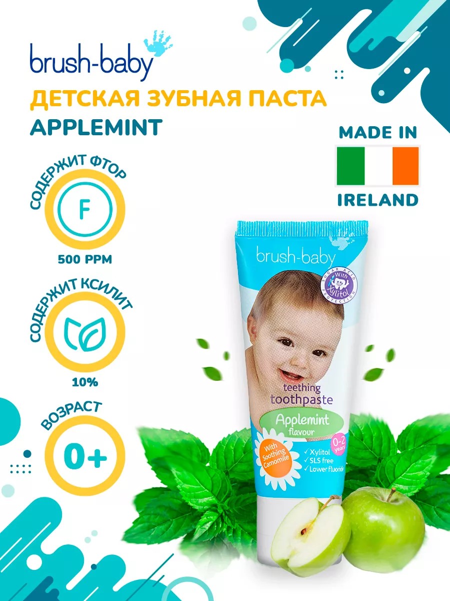 Brush-baby Детская зубная паста Applemint яблоко-мята, 0-2 года