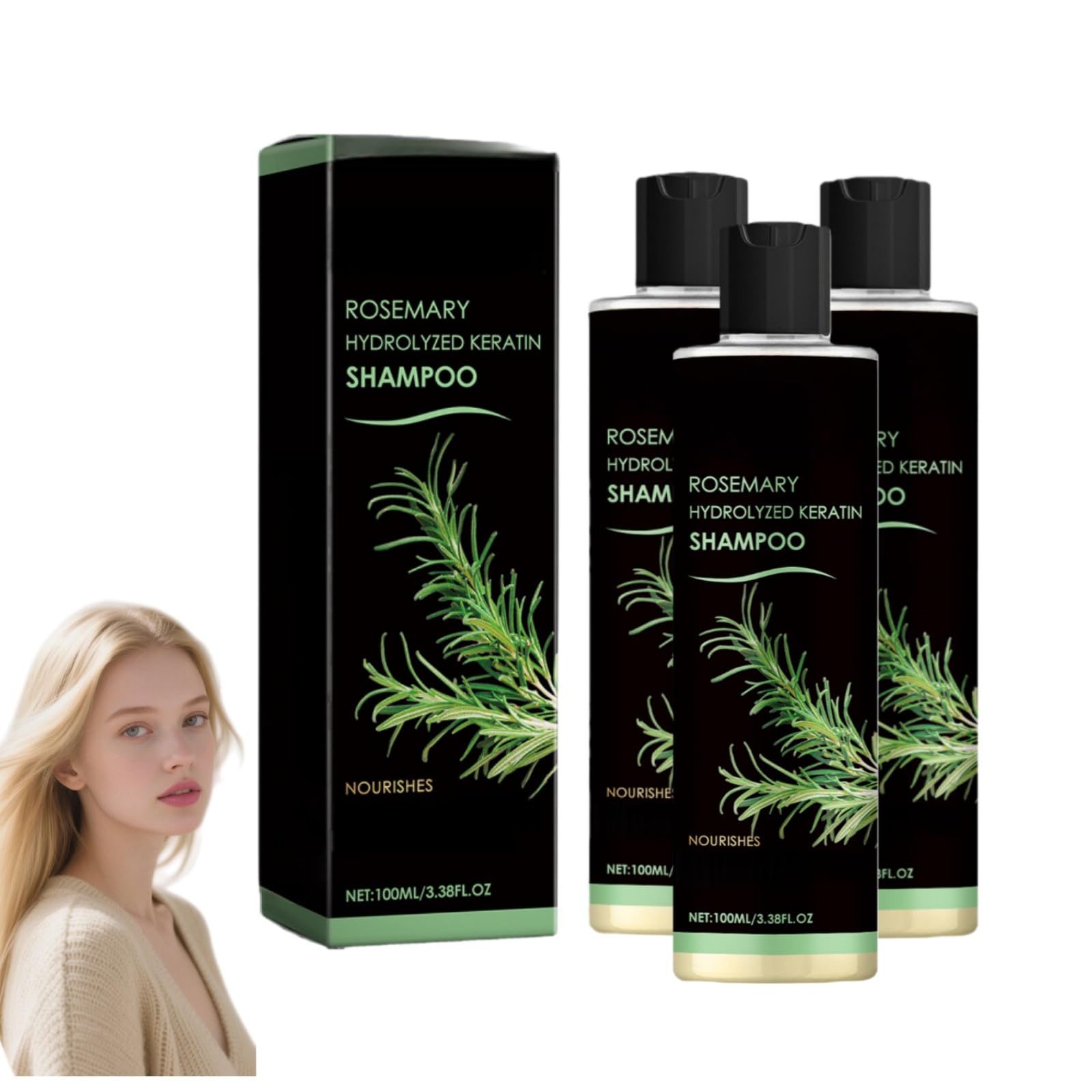 DESCRIPTION DU PRODUIT DESCRIPTION DU PRODUIT Strengthen Nourishing With Rosemary Oil For Hair Strength And Keratin, Rosemary Thickening Shampoo, Hair Thickening Shampoo For Men, Mens Hair Thickening Shampoo, Rosemary Oil Hair Strengthening Serum How To Use: 1.Wet your hair and scalp with clean water. 2.Rub an appropriateamount of this product into your hands to create foam, apply it to your hair and scalp and massage for2-3 minutes. 3.Rinses with clean water. Specification: Item Name:Rosemary Shampoo Net Content: 100ml Shelf Life: 3 Years Package Includes: 1 2 3 5 Bottles Rosemary Shampoo 100ml NOTE: 1.Please allow 1-2cm differs due to manual measurement. 2.Due to the different display and different light, the picture may not show the actual color of the item. AVERTISSEMENT DE SÉCURITÉ Keep away from children and direct sunlight.Multi-Benefit Hair Care: More than just a rosemary shampoo, it's a complete hair care solution. Use it as a volumizing shampoo for thinning hair to add instant lift, or as part of your daily routines to maintain healthy, vibrant locks. Gentle Formulation: As a gentle shampoo, it's free from harsh chemicals that can strip hair of its oils. Suitable for all hair types, including fine hair shampoo needs and color-treated hair. Soothes Balances Scalp: The rosemary in our shampoo helps improve scalp health and soothe dryness or irritation. It's an excellent choice for those with fine or thinning hair, addressing concerns at the root. Lifts Volumizes: This hair thickening shampoo and volumizing shampoo works to reduce breakage and split ends. The keratin hair treatment formulation repairs damaged hair, leaving it feeling stronger, and with enhanced body and bounce. Nourishes Strengthens: Infused with rosemary oil and hydrolyzed keratin, our shampoo deeply nourishes the scalp and strengthens hair strands from the root, creating an environment for healthy hair. Experience visibly thicker and fuller-looking hair over time.Shampooing au romarin avec kératine hydrolysée - Shampooing pour la croissance des cheveux au romarin pour les femmes, Shampooings pour les hommes et les femmes, pour la taille de voyage (3)DESCRIPTION DU PRODUIT DESCRIPTION DU PRODUIT Strengthen Nourishing With Rosemary Oil For Hair Strength And Keratin, Rosemary Thickening Shampoo, Hair Thickening Shampoo For Men, Mens Hair Thickening Shampoo, Rosemary Oil Hair Strengthening Serum How To Use: 1.Wet your hair and scalp with clean water. 2.Rub an appropriateamount of this product into your hands to create foam, apply it to your hair and scalp and massage for2-3 minutes. 3.Rinses with clean water. Specification: Item Name:Rosemary Shampoo Net Content: 100ml Shelf Life: 3 Years Package Includes: 1 2 3 5 Bottles Rosemary Shampoo 100ml NOTE: 1.Please allow 1-2cm differs due to manual measurement. 2.Due to the different display and different light, the picture may not show the actual color of the item. AVERTISSEMENT DE SÉCURITÉ Keep away from children and direct sunlight.Multi-Benefit Hair Care: More than just a rosemary shampoo, it's a complete hair care solution. Use it as a volumizing shampoo for thinning hair to add instant lift, or as part of your daily routines to maintain healthy, vibrant locks. Gentle Formulation: As a gentle shampoo, it's free from harsh chemicals that can strip hair of its oils. Suitable for all hair types, including fine hair shampoo needs and color-treated hair. Soothes Balances Scalp: The rosemary in our shampoo helps improve scalp health and soothe dryness or irritation. It's an excellent choice for those with fine or thinning hair, addressing concerns at the root. Lifts Volumizes: This hair thickening shampoo and volumizing shampoo works to reduce breakage and split ends. The keratin hair treatment formulation repairs damaged hair, leaving it feeling stronger, and with enhanced body and bounce. Nourishes Strengthens: Infused with rosemary oil and hydrolyzed keratin, our shampoo deeply nourishes the scalp and strengthens hair strands from the root, creating an environment for healthy hair. Experience visibly thicker and fuller-looking hair over time.