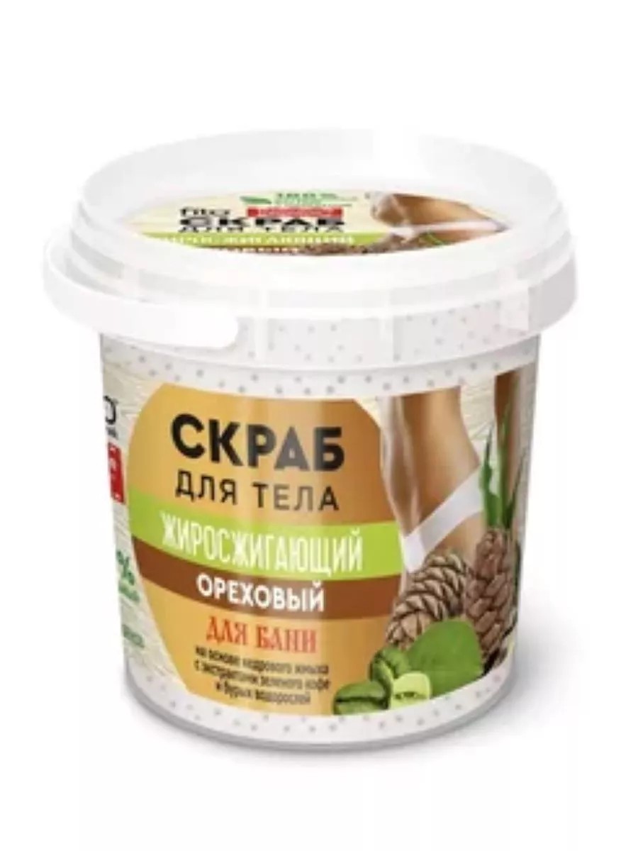 Натуральный скраб для тела Ореховый, придает коже тонус и упругость, это эффективное средство для ухода за кожей, более чем на 99% состоящее из натуральных компонентов. Пилинг для тела деликатно отшелушивает и очищает кожу. Кедровый жмых с экстрактом зеленого кофе и бурых водорослей интенсивно тонизируют и придают упругость, отшелушивающий скраб для тела питает и увлажняет, делая кожу гладкой и бархатистой. Скраб с маслами придает коже жиросжигающий, антицеллюлитный эффект, разглаживает неровный кожный покров. Аромат натурального ореха для тела оставляет на коже изысканный аромат и гладкость на весь день! Уникальность продукции в неповторимой рецептуре, в которых объединены 100% натуральные ингредиенты без ГМО, без парабенов. Другими словами, самая эффективная косметика, которая помогает преобразить Вашу естественную красоту