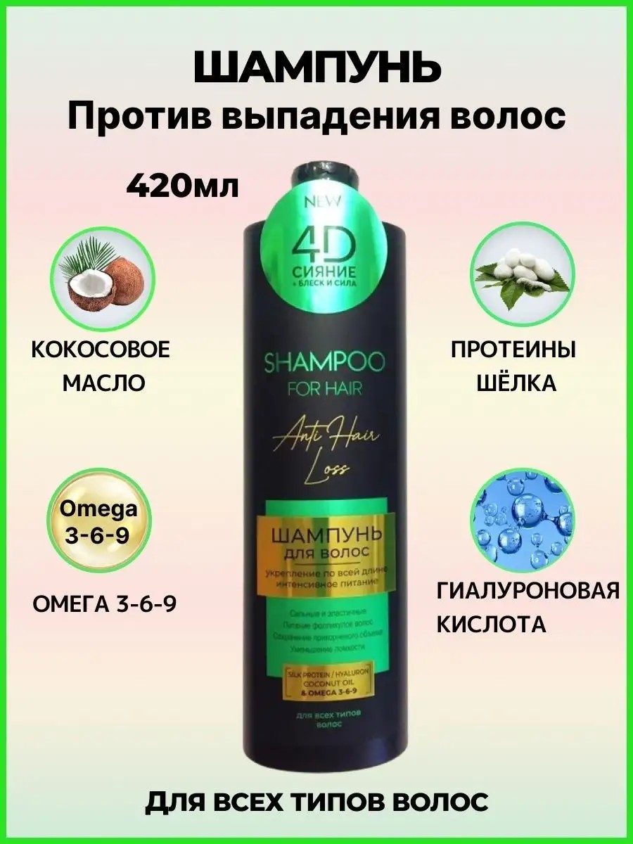 Средство по уходу за волосами и кожей головы ,с активными компонентами: протеинами, коллагенами, кератином, экстрактом бамбука, пантенолом, маслом арганы, миндальным маслом, гиалуроновой кислотой, омегой 3-6-9, маслом кокоса - подходит для сухих, жирных, ломких, густых, тонких, кудрявых, окрашенных , ламинированных, мелированных, непослушных, для осветленных, для седых - всех типов волос. Предотвращает и избавляет от перхоти. Шампунь для мягкого, деликатного очищения и укрепления волос, создания дополнительного объема. Комплекс Omega 3 6 9 оказывает интенсивное питательное и увлажняющее действие. Омега — это ненасыщенные жирные кислоты, которые очень важны для здоровья волос. Они наполняют витаминами, восстанавливают водный баланс в клетках и повышают упругость волос. Также комплекс окутывает защитным барьером против механических повреждений и разрушительного воздействия свободных радикалов. Экстракт бамбука придает прядям упругость и эластичность, стимулирует рост волос, увеличивая их густоту. Коллаген укрепляет поверхность и структуру волос, делая их более плотными и крепкими. Миндальное масло и комплекс омега 3-6-9 предупреждают появление секущихся кончиков, нормализуют работу сальных желез, придают волосам блеск и мягкость. Протеины шелка ускоряют обмен веществ, происходящий на клеточном уровне кожи головы, улучшают рост и состояние волос, регулируют уровень меланина, а также качественно защищают от воздействия УФ-лучей. Гиалурон поддерживает естественный уровень увлажненности, препятствует пересушиванию кожи, разглаживает текстуру волоса, уменьшает ломкость волос. Масло кокоса питает и укрепляет волосяные фолликулы, придает блеск волосам. Пантенол для волос — мощнейшее средство, он преображает шевелюру, делая ее здоровой, крепкой и защищая ее от выпадения.