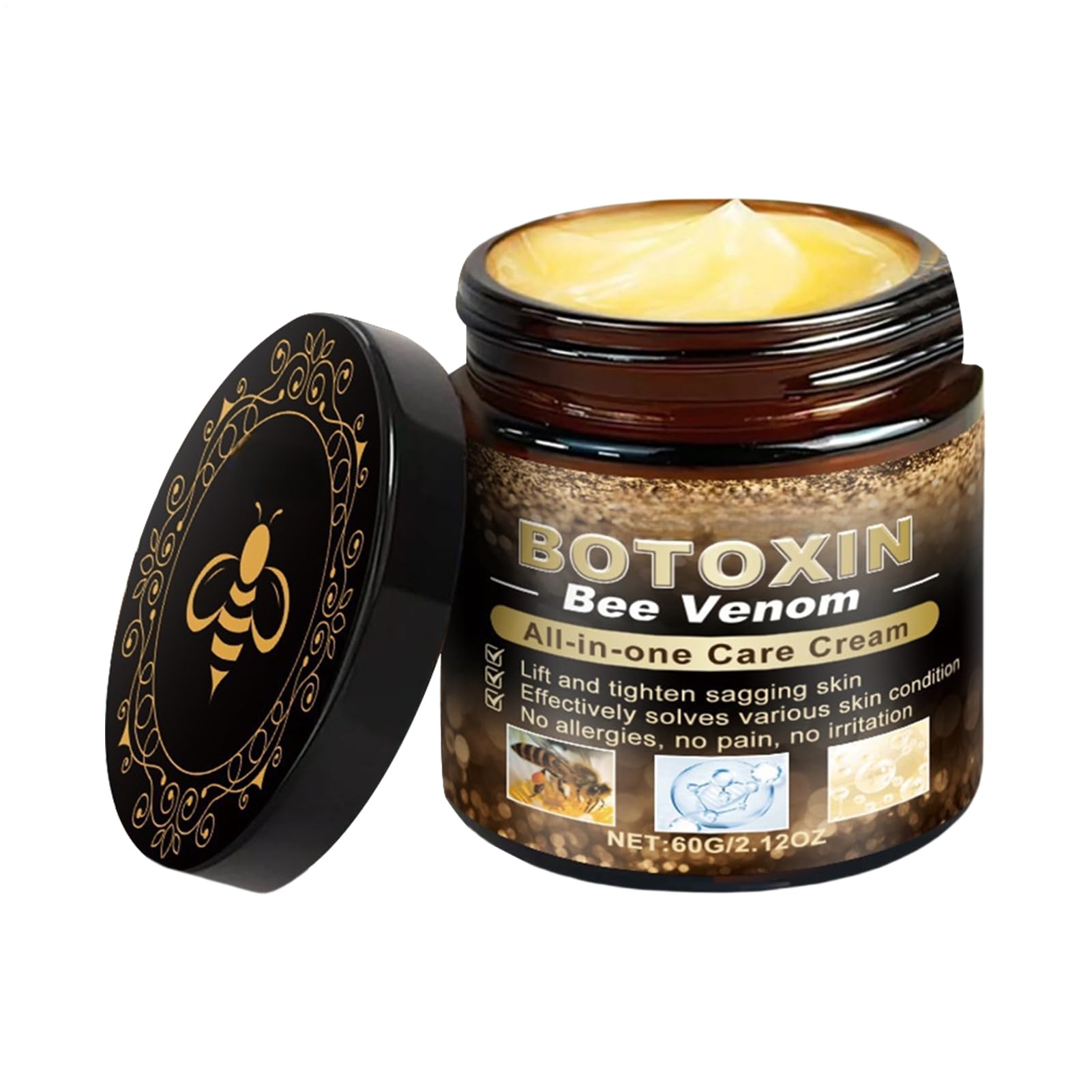 DESCRIPTION DU PRODUIT DESCRIPTION DU PRODUIT Its firming blend hydrates deeply, locking in moisture for a plump, youthful glow. Enriched with nourishing ingredients, it supports lifting and elasticity around the clock. Specifications: Name: Face Cream Capacity: 60g Product List: 1 Face Cream Note: Due to different lighting and screen settings, the item color may be slightly different from the picture. Due to different manual measurements, please allow a 1-2cm difference in size. AVERTISSEMENT DE SÉCURITÉ N'est pas applicableNatural Bee Extracts with Power: Features bee extract and botanical elements known for their healing, tightening, and hydrating properties This cruelty-, paraben- cream is safe for daily use on delicate facial skin. All-Skin-Type Compatibility: Whether you have dry, oily, sensitive, or combination skin, this moisturizer is designed to adapt and support your skin's unique needs while promoting a healthy and even tone throughout the day. Anti-Aging Benefits for Men Women: Specially formulated to reduce fine lines, firm sagging areas, and improve overall skin texture Ideal for both women and men looking to maintain a smooth, rejuvenated, and balanced complexion. Lightweight Texture, Intense Nourishment: Provides rich nourishment without clogging pores or feeling greasy The non-comedogenic formula absorbs quickly, making it perfect for use under makeup or as part of your nighttime routine. Powerful Hydration and Firming Effect: Infused with bee-derived ingredients and active botanicals, this moisturizer deeply hydrates while enhancing skin elasticity Delivers a lifted, youthful appearance with continued use on all skin types.Reusable Face Moisturizer, Bee Firming Cream, Hydrating, Lifting Anti-Aging Formula, Nourishing Daily, 50ml Jar, Suitable for Women Men All Skin TypesDESCRIPTION DU PRODUIT DESCRIPTION DU PRODUIT Its firming blend hydrates deeply, locking in moisture for a plump, youthful glow. Enriched with nourishing ingredients, it supports lifting and elasticity around the clock. Specifications: Name: Face Cream Capacity: 60g Product List: 1 Face Cream Note: Due to different lighting and screen settings, the item color may be slightly different from the picture. Due to different manual measurements, please allow a 1-2cm difference in size. AVERTISSEMENT DE SÉCURITÉ N'est pas applicableNatural Bee Extracts with Power: Features bee extract and botanical elements known for their healing, tightening, and hydrating properties This cruelty-, paraben- cream is safe for daily use on delicate facial skin. All-Skin-Type Compatibility: Whether you have dry, oily, sensitive, or combination skin, this moisturizer is designed to adapt and support your skin's unique needs while promoting a healthy and even tone throughout the day. Anti-Aging Benefits for Men Women: Specially formulated to reduce fine lines, firm sagging areas, and improve overall skin texture Ideal for both women and men looking to maintain a smooth, rejuvenated, and balanced complexion. Lightweight Texture, Intense Nourishment: Provides rich nourishment without clogging pores or feeling greasy The non-comedogenic formula absorbs quickly, making it perfect for use under makeup or as part of your nighttime routine. Powerful Hydration and Firming Effect: Infused with bee-derived ingredients and active botanicals, this moisturizer deeply hydrates while enhancing skin elasticity Delivers a lifted, youthful appearance with continued use on all skin types.
