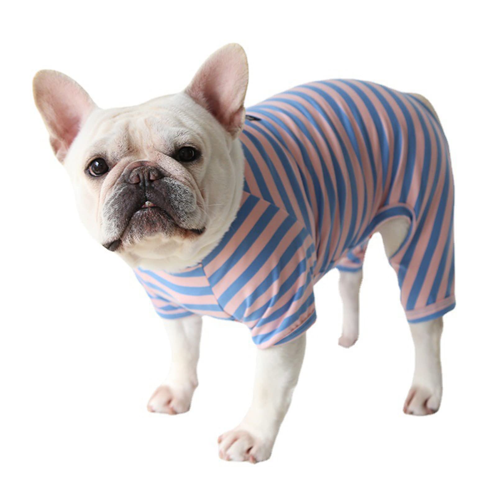 Material: cotton. Size:material: made of soft cotton fabric, soft, comfortable and breathable enough, soft fabric keeps your pets warm and comfortable all night.Easy to carry and take off, dog dividers fits perfectly and is comfortable to wear.Size XS: Back length: 29 cm, chest size: 48 cm, suitable for puppies, cats and small dogs.(Weight only as a reference, please check the size table carefully, especially the chest size and the back length).Material: Baumwolle. Größe:Material: aus weichem Baumwollstoff, weich, bequem und atmungsaktiv genug, weicher Stoff hält Ihre Haustiere die ganze Nacht warm und bequem. Einfach zu tragen und auszuziehen, Hunde-Einteiler passt perfekt und ist angenehm zu tragen. Größe XS: Rückenlänge: 29 cm, Brustumfang: 48 cm, passend für Welpen, Katzen und kleine Hunde. (Gewicht nur als Referenz, bitte überprüfen Sie die Größentabelle sorgfältig, insbesondere den Brustumfang und die Rückenlänge).BT Bear Hundekleidung, bunt, gestreifter Schlafanzug aus weicher Baumwolle, Overall, Bulldogge, Einteiler, Kostüm für Welpen, kleine Hunde (XS, Blau, Rosa) X-Small Blau Rosa