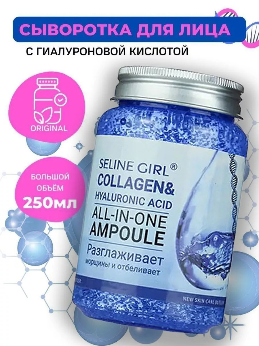 Многофункциональная антивозрастная сыворотка для лица с гиалуроновой кислотой и коллагеном Collagen совмещает в себе свойства 3-х косметических средств: тоника, эмульсии и сыворотки. Глубоко увлажняет, восстанавливает гидробаланс, повышает эластичность и упругость. Устраняет дряблость, разглаживает мелкие морщинки и омолаживает кожу. Выравнивает тон, заметно отбеливает. Способ применения: возьмите лопаткой необходимое количество сыворотки, нанесите на хорошо очищенную кожу лица и распределите массирующими движениями. Корейский лифтинг-уход из 4 шагов: Шаг 1. Пенка: очищает и увлажняет кожу.Шаг 2. Тонер: готовит кожу к последующему уходу ; Шаг 3. СЫВОРОТКА с коллагеном: увлажняет, выравнивает кожу, усиливает действие крема; Шаг 4. Крем с муцином улитки: увлажняет, убирает пигментацию, омолаживает
