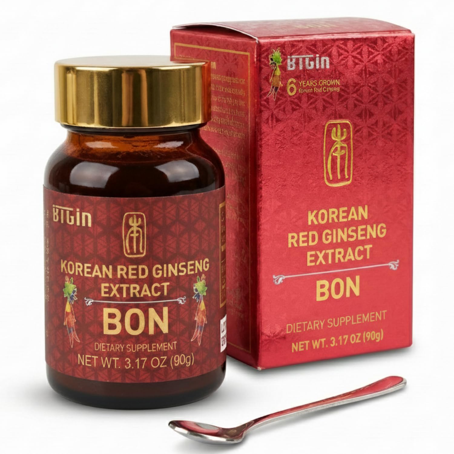 BTGIN Bon Korean Red Panax Ginseng Extract - 100% Pure Concentrate - No Additives Extra Strength Supplement - Caffeine Free Energy Focus & Immune Support - 90g