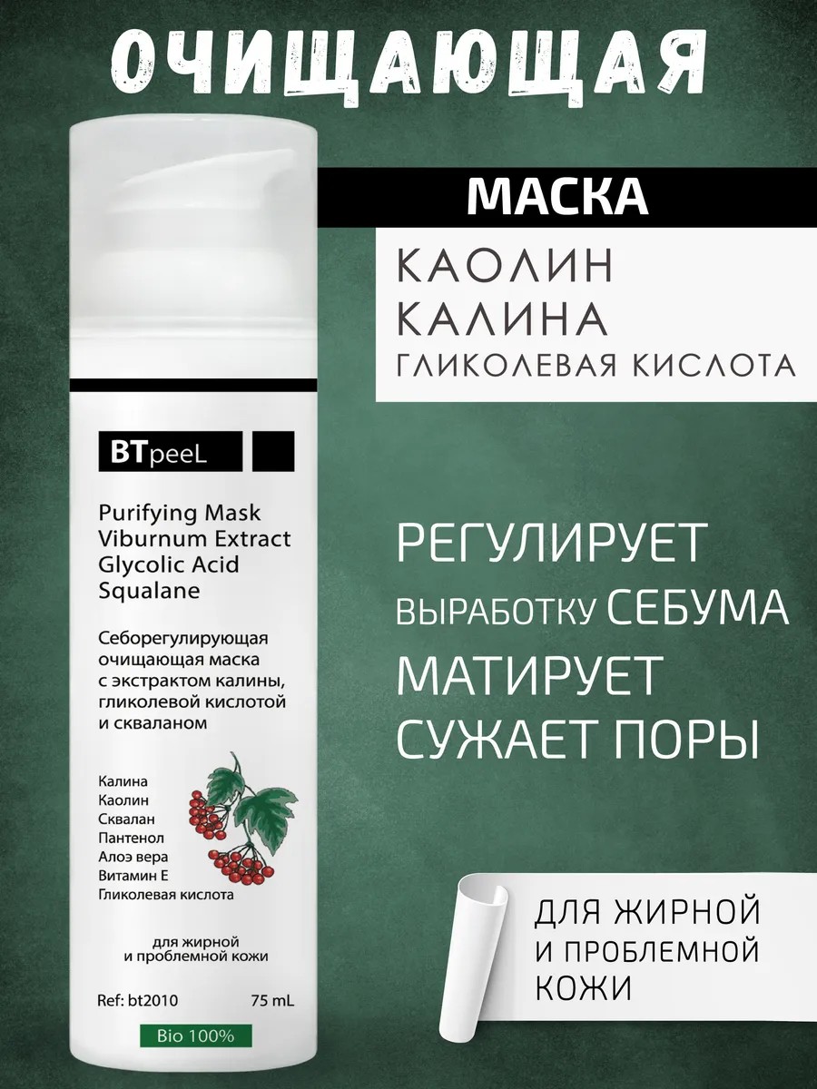 | Состав | каолин; гликолевая кислота; сквалан; экстракт калины |