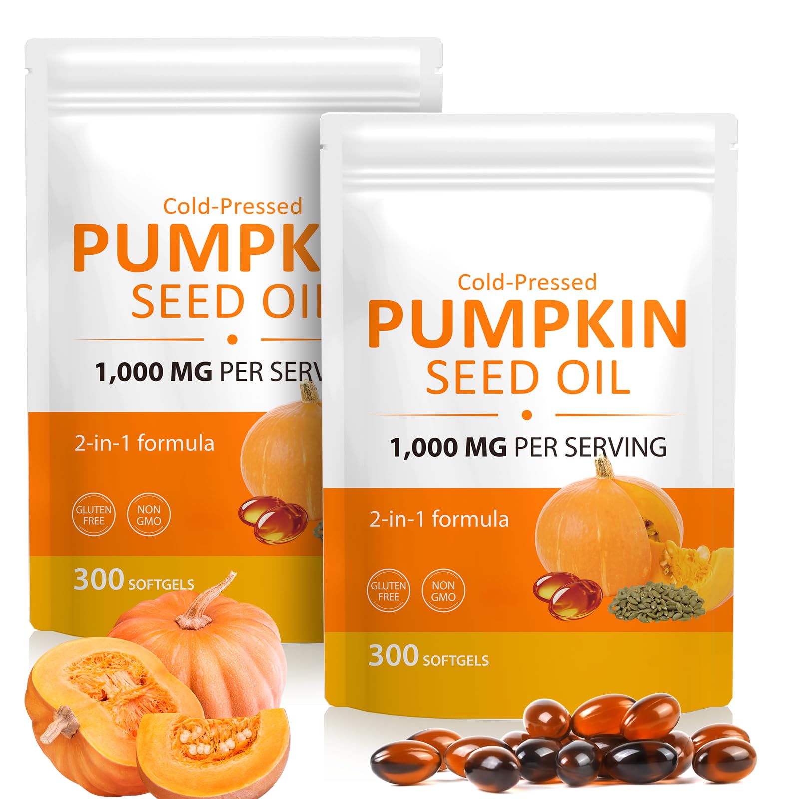 BTSE 2 Pack Pumpkin Seed Oil Cold Pressed Supports Hair Urinary 1000mg Per Serving 600 Softgels