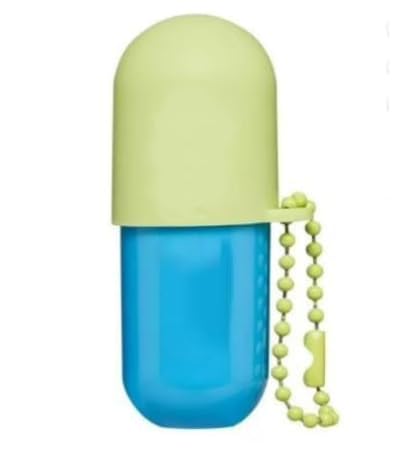 DIMENSIONS: Approximately 2 inches in length, featuring a twist-off cap design for easy application. TRAVEL-FRIENDLY: Includes a decorative Pastal green beaded chain that can be attached to bags or used as a keychain. PACKAGING: Unique two-tone capsule design featuring embossed lettering and a playful aesthetic. PORTABLE SIZE: Compact 0.15 oz lip balm perfect for on-the-go use, fits easily in any purse or pocket. DESIGN: Adorable pill-shaped lip balm in sky blue and pastel green colors with a convenient beaded chain attachment for easy carrying.