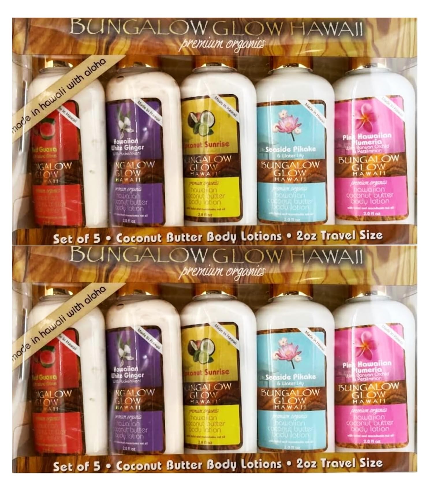 Bubble Shack Hawaii Bungalow Glow Premium Organics 5 Pack Coconut Butter Body Lotion 2 Oz -pack of 2