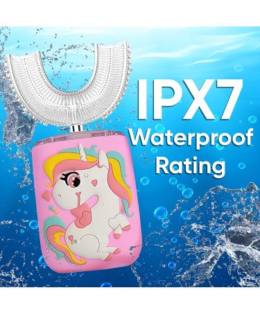 BubblezKidz Kids Electric Toothbrush U Shaped Dinosaur Cartoon Ultra Sonic 6 Brush Cleaning Modes w/ Smart Timer Ages 2-18 Years Old IPX7 Waterproof, Rechargeable, with Stickers (Unicorn)