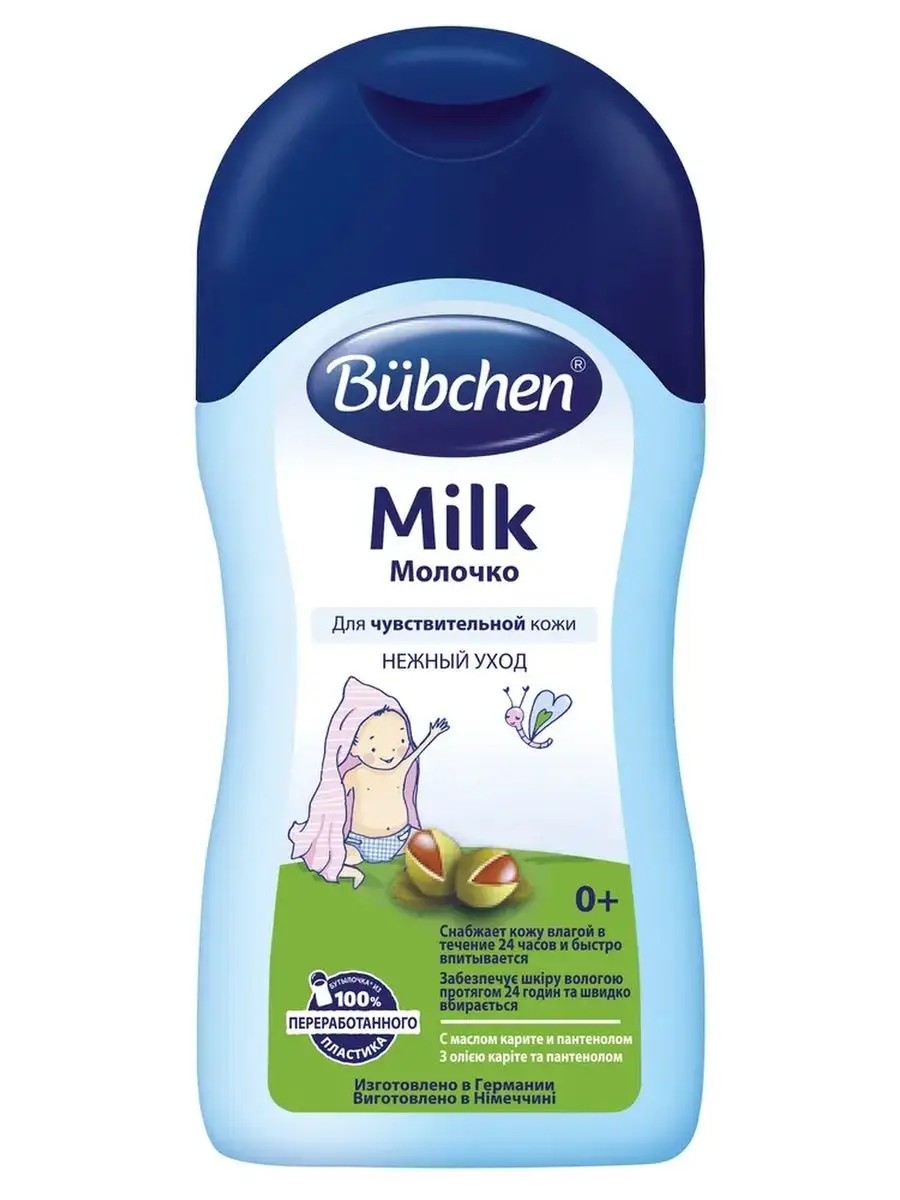 Молочко для чувствительной кожи Bubchen 50 мл./200 мл./ 400 мл. Детское увлажняющее молочко Bubchen 200 мл./400 мл. Легкая формула с маслом карите и пантенолом быстро впитывается и снабжает нежную детскую кожу влагой в течение 24 часов. Успокаивает кожу и делает ее мягкой и нежной. Поддерживает естественную защитную функцию кожи. Для детей с рождения и для всей семьи. Без красителей и консервантов. Веганский продукт. Одобрено дерматологами.