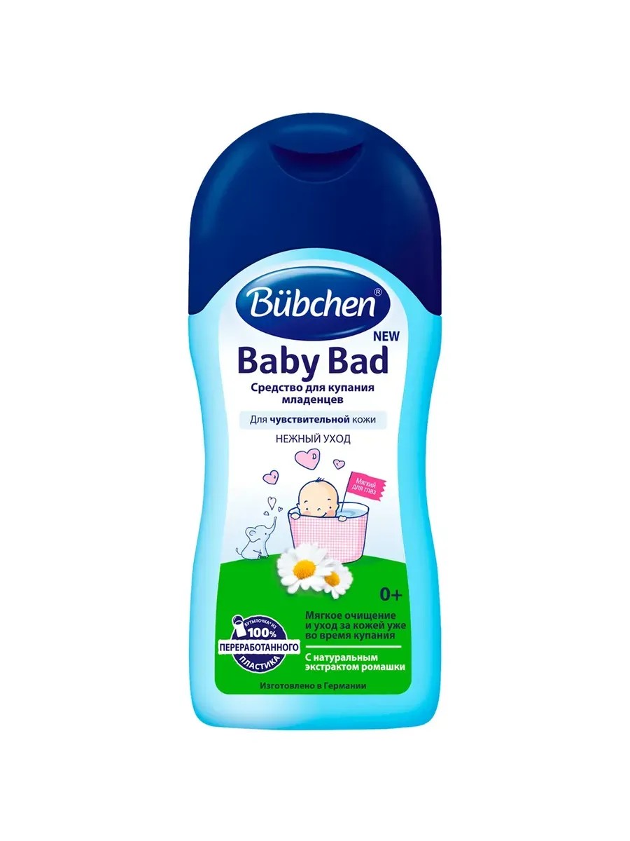 Bubchen Baby Bath, 200 ml, 1 pack. This gentle herbal baby bath stabilizes and restores the skin's biological acid-lipid layer and supports its natural barrier function. Herbal extracts reduce skin redness and soothe baby's nervous system. Combines bath foam and gentle shampoo. "No tears." Ingredients: Aqua, Chamomilla Recutita Extract, Citric Acid, Coco-Glucoside, Glycerin, Glyceryl Oleate, Heliotropine, Hydrolyzed Wheat Protein, Panthenol, Tocopherol.