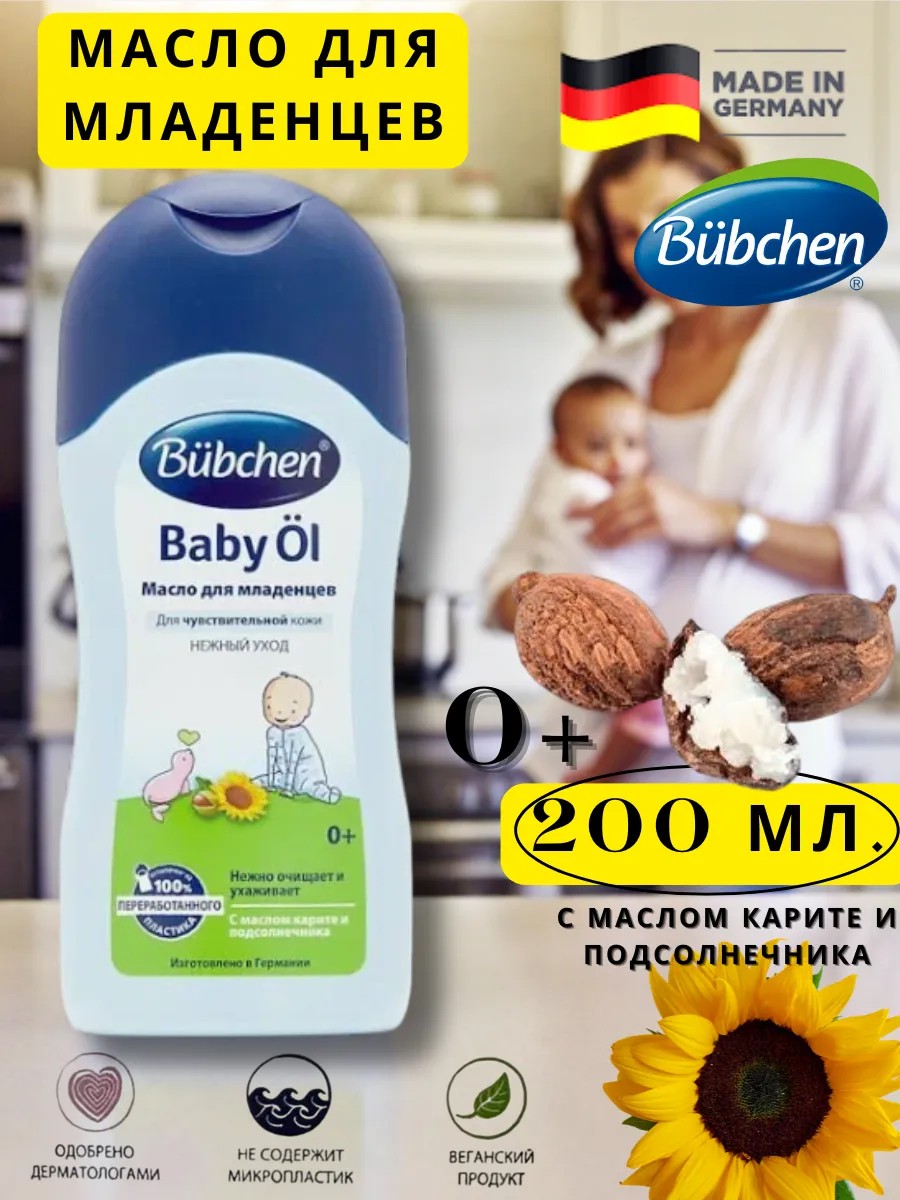 Бюбхен Масло для младенцев с натуральными маслами карите и подсолнечника — это идеальное средство для бережного ухода за кожей вашего малыша. Оно эффективно увлажняет, питает и успокаивает чувствительную кожу, делая её мягкой и защищённой. Подходит для ежедневного массажа, очищения кожи в области подгузника и размягчения молочных корочек на голове у младенцев. Обеспечивает глубокое увлажнение и мягкий уход за самой нежной кожей. Богатое натуральными компонентами масло содержит масла карите и подсолнечника, которые глубоко питают кожу, устраняют сухость и покраснения, а экстракт календулы обладает успокаивающим эффектом. Жирные кислоты растительных масел (омега-3, омега-6 и другие) способствуют питанию кожи и снижению раздражений. Идеально подходит для массажа, способствующего расслаблению ребёнка и улучшению кровообращения, а также для мягкого очищения чувствительных участков, таких как паховая область и кожные складки. Безопасный и натуральный состав: масло не содержит минеральных масел, парабенов, силиконов или красителей. Его формула основана на натуральных компонентах, что делает его безопасным для ежедневного использования с рождения. Подходит для всей семьи, включая взрослых с чувствительной кожей. Способ применения: после купания или душа немного разогреть капли масла в ладонях и мягкими массажными движениями нанести на сухую или влажную кожу малыша. Для очищения нанести несколько капель на ватный диск и аккуратно обработать кожу в области подгузника и складки. Материал упаковки — 100 % переработанный пластик. Меры предосторожности: хранить в недоступных для детей местах; при попадании в глаза — промыть большим количеством воды.