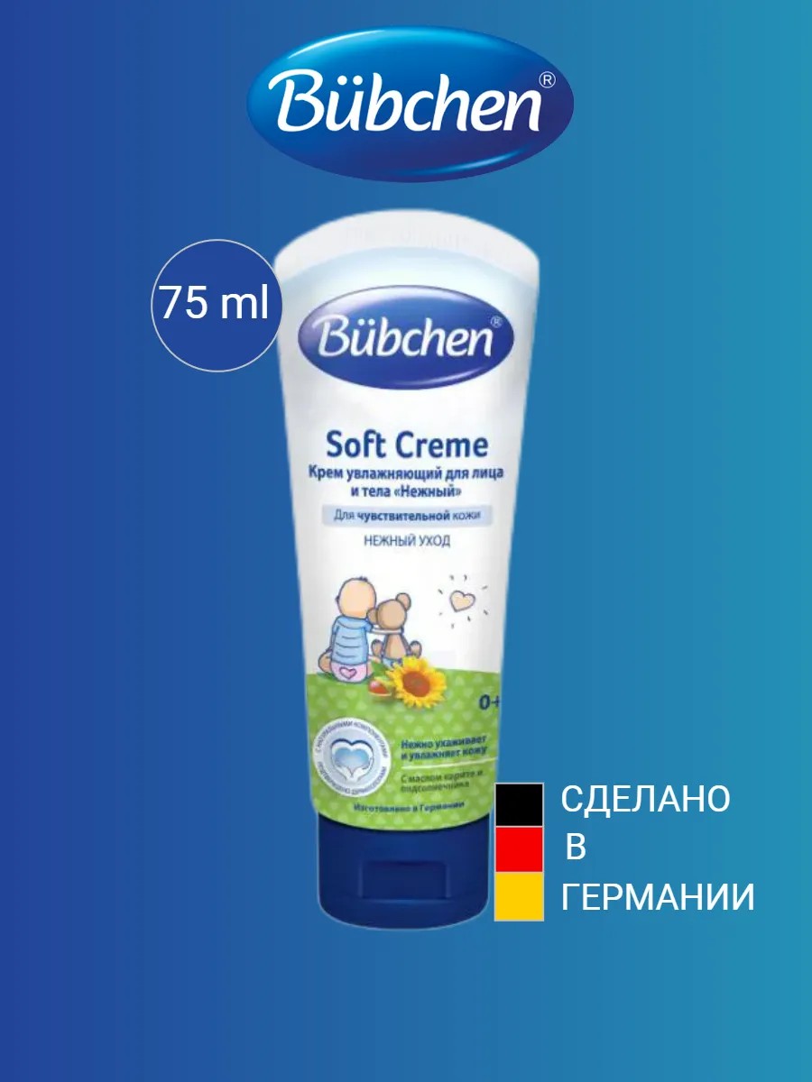 Bübchen Soft Creme — это увлажняющий крем для ухода за чувствительной и сухой кожей. Он создан для ежедневного использования и подходит как для детей, так и для взрослых. Этот крем обладает мягкой текстурой и легко впитывается, обеспечивая коже необходимое увлажнение и защиту.Мягкое увлажнение: Крем обеспечивает интенсивное увлажнение и помогает удерживать влагу в коже, предотвращая ее пересыхание.