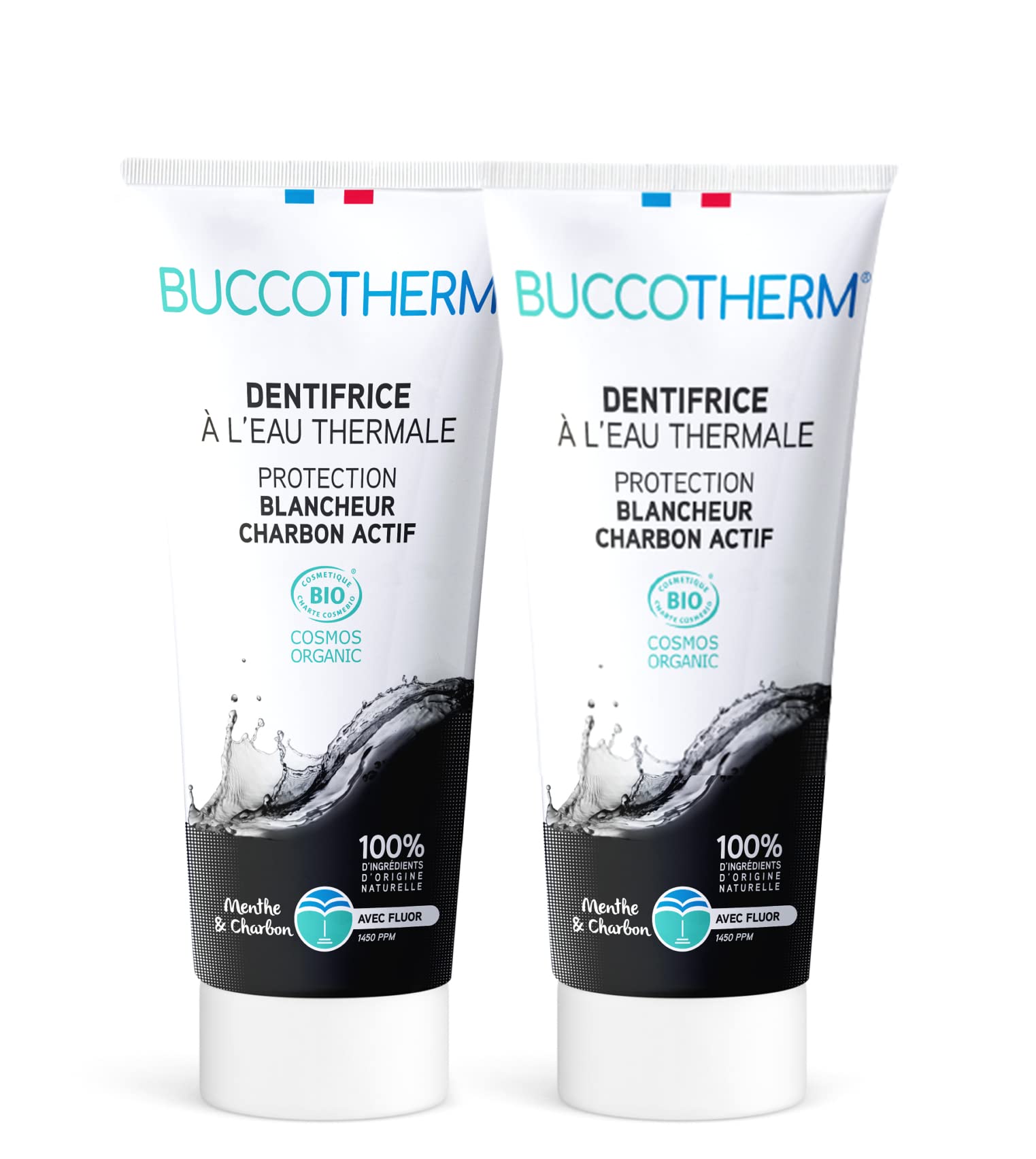 The brand offers natural products that meet international pharmaceutical quality standards. To guarantee optimal effectiveness, the ODOST laboratory harnesses the beneficial properties of the thermal waters of Castéra-Verduzan. This 100 Made in France oral care range is a source of well-being for the mouth. The thermal water used in the brand's products travels slowly through different geological layers, becoming enriched with mineral salts and trace elements. This journey gives it soothing and remineralizing properties. Drawn directly from the source, it is the main ingredient in the Buccotherm range. INSTRUCTIONS FOR USE Brush your teeth daily for 2 minutes, at least twice a day. This toothpaste is suitable for: adults seeking complete daily whitening care that is gentle on teeth, and for people prone to superficial stains on their teeth, after having their teeth professionally cleaned or whitened. SAFETY WARNING Not recommended for children under 7 years old. See moreECO-DESIGNED RANGE - Buccotherm is committed to more responsible oral hygiene. With our new eco-designed range, we are reinforcing our commitment by offering you products that are even kinder to your teeth and the planet. ? RECYCLED AND RECYCLABLE - Its tube is made from recycled plastic and is 100 recyclable. Its lighter plastic cap features a tamper-evident system. No compromises for you or the planet! Like all BUCCOTHERM products, our eco-designed range is manufactured at the source, at our production site in the heart of the Gers region, in southwestern France. DIRECTIONS FOR USE - Brush daily for 2 minutes, at least twice a day. This toothpaste is suitable for: adults seeking complete daily whitening care that is gentle on teeth, and for people prone to superficial stains on their teeth, after scaling or teeth whitening. Due to its fluoride content, this product is not suitable for children under 7 years old, who have specific needs. Recommended by dentists. ? TRIPLE ACTION - Soothes gums and remineralizes enamel - Helps clean and remove food deposits that cause tooth discoloration and restores natural whiteness - Helps fight plaque, promotes cavity prevention, and provides fresh breath after every brushing. WHITENING AND CARE - BUCCOTHERM Whitening Protection with Activated Charcoal is a certified organic toothpaste made with 100 naturally derived ingredients. Its formula combines Castéra-Verduzan thermal spring water with activated charcoal to restore teeth's natural whiteness while respecting enamel. Enriched with zinc citrate and fluoride (1450 ppm), it also helps fight plaque buildup. Its natural mint flavor provides a pleasant feeling of freshness.BUCCOTHERM [Dentifrice Protection Blancheur au Charbon Actif] Apaise Certifié Bio - 100 d'ingrédients d'origine naturelle Lot de 2 – 2x75 mlDESCRIPTION DU PRODUIT DESCRIPTION DU PRODUIT La marque propose des produits naturels respectant les standards de qualité et normes pharmaceutiques internationales. Afin de garantir la meilleure efficacité, le laboratoire ODOST utilise les vertus des eaux thermales de Castéra-Verduzan. La gamme de soins bucco-dentaires 100 Made in France est une source de bienfaits pour la bouche. L'eau thermale utilisée dans les produits de la marque chemine lentement à travers les différentes couches géologiques pour se charger en sels minéraux et en oligo-élements. Ce voyage lui offre des vertus apaisantes et reminéralisantes. Puisée à la source, elle est l'élément principal de la gamme Buccotherm. MODE D'EMPLOI Se brosser les dents quotidiennement pendant 2 minutes, au moins deux fois par jour. Ce dentifrice convient: aux adultes recherchant un soin blanchissant complet quotidien et respectueux des dents, aux personnes sujettes à des tâches superficielles sur les dents, après avoir fait un détartrage ou un blanchiment dentaire. AVERTISSEMENT DE SÉCURITÉ Non recommandé pour les enfants de moins de 7 ans. Voir plusGAMME ECO-CONÇUE - Buccotherm s'engage pour une hygiène bucco dentaire plus responsable. Avec notre nouvelle gamme éco-concue nous renforçons notre démarche en vous proposant des produits encore plus respectueux de vos dents et de la planète. ? RECYCLÉ ET RECYCLABLE - Son tube est fabriqué à partir de plastique recyclé et est 100 recyclable. Sa capsule allégée en plastique est dotée d'un système d'inviolabilité. Sans compromis pour vous et la planète ! Comme tous les produits BUCCOTHERM, notre gamme éco-conçue est fabriquée à la source, sur notre site de production au cœur du Gers, dans le sud-ouest de la France. CONSEILS D'UTILISATION - En brossage quotidien pendant 2 minutes, au moins deux fois par jour. Ce dentifrice convient: aux adultes recherchant un soin blanchissant complet quotidien et respectueux des dents, aux personnes sujettes à des tâches superficielles sur les dents, après avoir fait un détartrage ou un blanchiment dentaire. De par son dosage en fluor, ce produit n'est pas adapté aux enfants de moins de 7 ans dont les besoins sont spécifiques. Recommandé par les dentistes. ? TRIPLE ACTION - Apaise les gencives et reminéralise l'émail - Aide à nettoyer et à éliminer les dépôts alimentaires à l'origine de la coloration des dents et leur redonne une blancheur naturelle - Aide à lutter contre la plaque dentaire, favorise la prévention des caries et procure une haleine fraîche après chaque brossage. BLANCHEUR ET SOIN - BUCCOTHERM Protection Blancheur au Charbon Actif est un dentifrice certifié BIO composé à 100 d'ingrédients d'origine naturelle. Sa formule associe l'Eau thermale de Castéra-Verduzan au charbon actif afin de redonner aux dents leur blancheur naturelle tout en respectant l'émail. Renforcé en citrate de zinc et en fluor – 1450 ppm – il aide aussi à lutter contre la formation de la plaque dentaire. Son arôme naturel de menthe apporte une sensation agréable de fraîcheur.