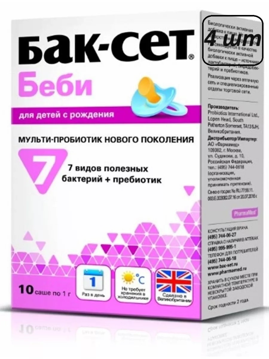 Торговое наименованиеБиологически активная добавка к пище «Бак-Сет Беби» («Bac-Set Baby») пробиотический комплекс для детей с рождения. Саше массой 1г