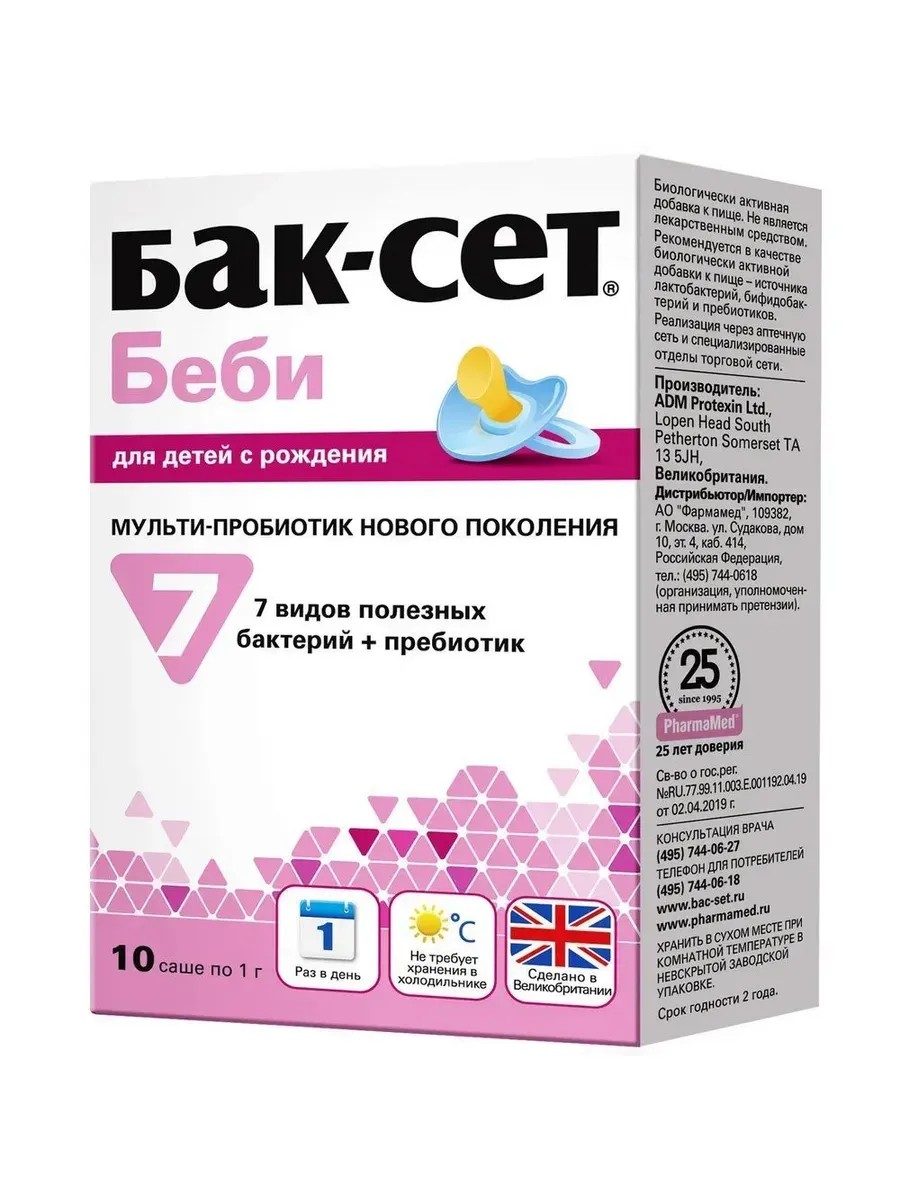 БакСет Беби мульти-пробиотик для детей 0+, 10 саше по 1 г