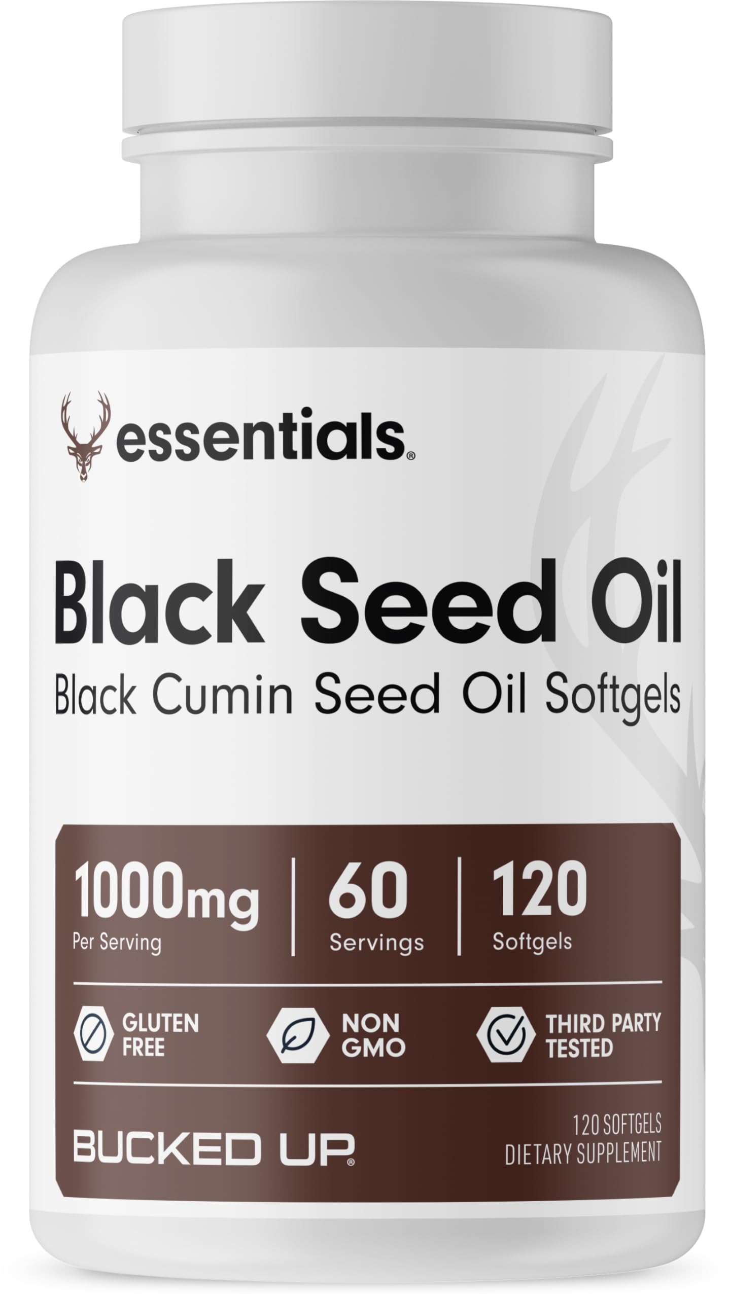 Bucked Up Black Seed Oil 1000mg Per Serving (Black Cumin Seed Oil) Essentials (60 Servings 120 Softgels)