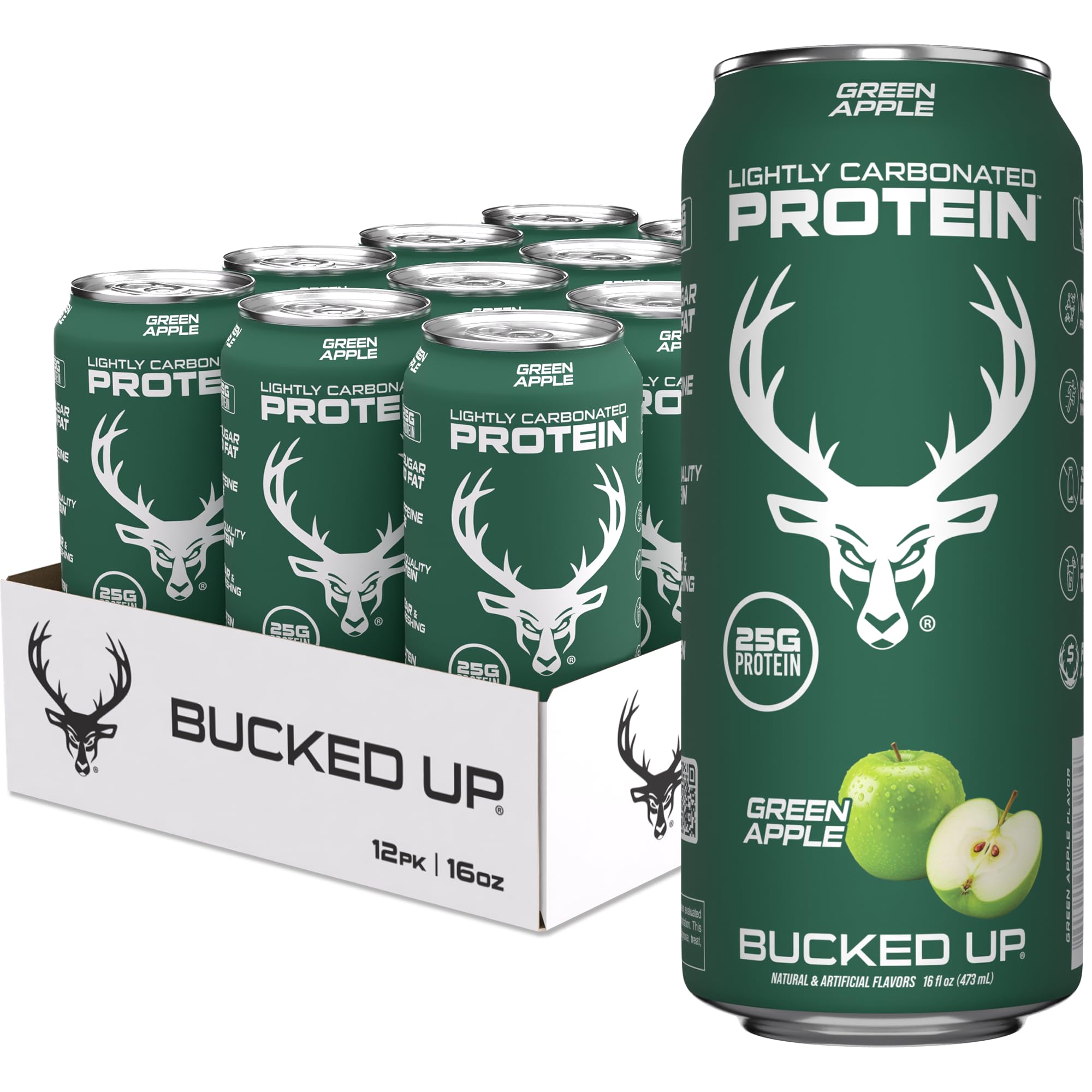 Experience a refreshing twist on protein with Bucked Up Lightly Carbonated Protein Soda. This ready-to-drink (RTD) protein beverage delivers 25g of high-quality whey protein isolate in every 16 oz can, all in a crisp, soda-style format. Unlike traditional protein shakes, this clear protein drink is fizzy and smooth, offering a light and enjoyable alternative to chalky textures. Formulated with zero sugar, zero carbs, no caffeine, and low calories, it's a convenient option for those looking to support an active lifestyle. This 12-pack protein soda is shelf-stable and easy to take on the go, perfect for the gym, work, or wherever your day takes you. Whether you're looking for a clean protein drink, a carbonated protein beverage, or just something refreshing and functional, Bucked Up fits right in. Available in a variety of flavors, including peach mango, orange cream, and rainbow candy and more!REFRESHMENT ON YOUR TERMS: Whether it's mid-day, post-workout, or just when you want something different, this protein soda is a flexible option for your day. 12 PACK CONVENIENCE: Each order includes twelve 16 oz cans. Easy to store, ready when you are at home, post workout, on the go, or wherever life takes you. Use as a workout drink for your gym protein needs or a simple RTD protein (Ready to Drink). SUGAR FREE, LOW CALORIE: Formulated with zero sugar, low calories, and no chalky texture. A straightforward, light protein recovery drink without unnecessary extras. HIGH PROTEIN 25g: Each 16 oz can contains 25 grams of high-quality whey protein isolate, in a clear and clean format with no dairy solids and no caffeine. DELICIOUS BUCKED UP PROTEIN: Not your typical protein shake, this crisp, soda-style drink delivers a refreshing twist on your routine. Lightly carbonated and smooth from the first sip.