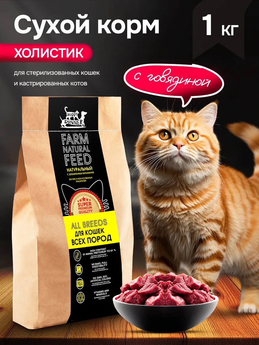 Позаботьтесь о здоровье и счастье вашей кошки с Buddy Dinner Gold Line с говядиной - первоклассным сухим кормом, разработанным с особым вниманием к качеству ингредиентов. Этот высококачественный корм содержит цельные ингредиенты, обеспечивая вашего питомца всеми необходимыми питательными веществами. Наша фермерская формула исключает использование вкусовых добавок ароматизаторов красителей сои кукурузы, глютена и курицы, что делает этот корм легкоусвояемым и подходящим даже для чувствительных животных. Buddy Dinner Голд Лайн - это корм для кошек всех возрастов, а так же для котят, больших и крупных пород, исключительное сочетание натуральных ингредиентов обеспечивает сбалансированное питание для поддержания оптимального здоровья и жизненного блеска вашей любимицы. Наш сухой супер премиум корм для кошек - идеальное мясное лакомство, которое не только порадует их изысканным вкусом, но и обеспечит баланс питательных веществ для здоровья и счастья питомца. Подходит как для стерилизованных, так и для кастрированных котов, обеспечивая им оптимальное питание и поддерживая их здоровье и активность. Ветеринары рекомендуют использовать наш продукт для пищеварения при мочекаменной болезни при аллергии профилактики зубного камня запорах диабете и для набора веса. Наш корм идеально подходит для всех типов шерсти – от лысых до короткошерстных и длинношерстных, обеспечивая прекрасное состояние шерсти. Данное деревенское лакомство идеально подходит для сфинксов, мейнкунов и британских кошек, а также для других пород, обеспечивая великолепное угощение и радуя всех питомцев своим вкусом. Наш корм разработан по английской рецептуре и подходит до 12 месяцев, от года и для взрослых котов и кошек. Заказывайте наш корм суперпремиум качества в мягкой крафтовой упаковке 1 кг.
