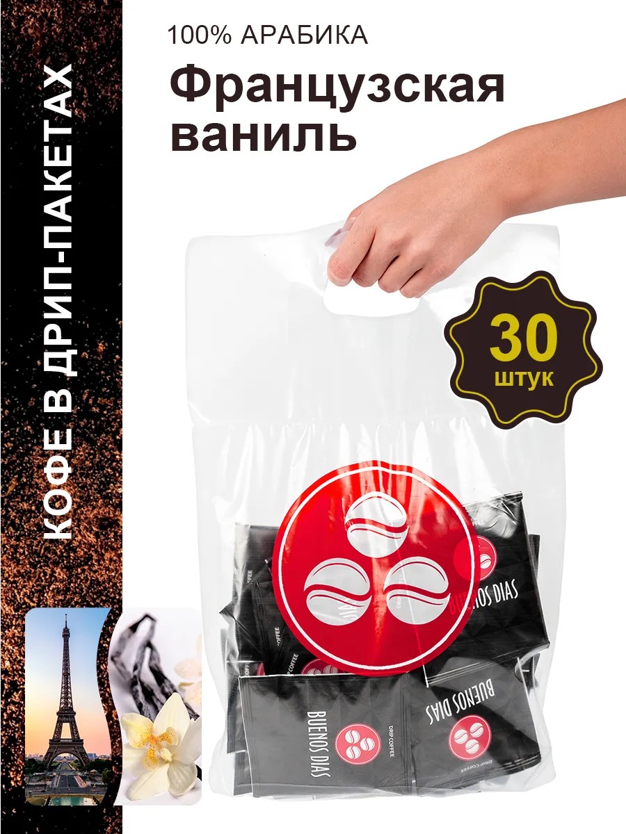 BUENOS DIAS Французская ваниль Кофе в дрип пакетах молотый 30 шт по 10 г