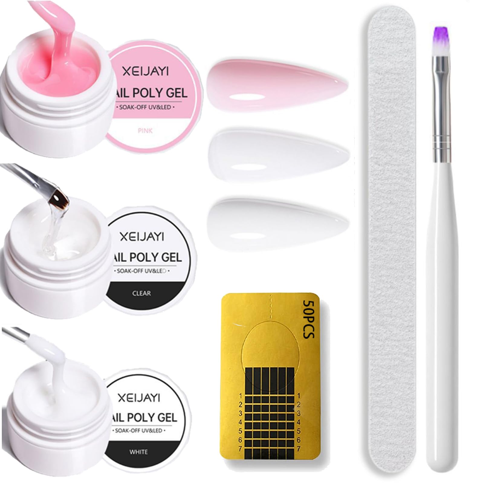 Feature: It made of healthy,environmental,friendly,no poisonous,pungent chemical materials. It is quick drying with any UV Light. Fantastic and super bright nails for you. This nail gel polish is easy to apply and soak off. Allow you for beginner or home nail art design. A great Nail Art Gift for yourself or your girlfriend. How To Use Our Builder Gel? Step 1. Clean Nails then nail surface as a normal manicuring process. Step 2. Apply base gel and cure it. Step 3. Put a nail form on your nail. Step 4. Apply extension gel on the nails and cure it. Step 5. Remove the forms. Step 6. Shape the nails. Step 7. Apply the top coat,cured by UV lamp or LED lamp. How to Remove Our UV Gel Nail Polish? 1. File the nail surface. 2. Apply Nail Wipe for about 7-10 minutes. 3. Apply Auroras Nail Gel Remover to remove the excess gel. 4. All removed. 5. Apply Nail Cuticle Oil and massage it gently. Warm Tips: 1. Avoid all skin contact. If redness or other signs of adverse reaction occur, discontinue use immediately. 2. Keep tightly sealed. Keep out of sunlight. Keep out of reach of children. 3.The nail surface feels sticky after curing, do not worry,this is normal,you can use slip solution to remove the tacky layer slick on the nail surface. NOTICE: The nail surface feels sticky after curing, do not worry,this is normal,you can use slip solution to remove the tacky layer slick on the nail surface. DIRECTIONS Clean nails then nail surface; Apply base gel and cure it; Put a nail form on your nail; Apply extension gel on the nails and cure it; Remove the forms; Shape the nails; Apply the top coat, cured by UV lamp or LED lamp; File the nail surface; Apply Nail Wipe for about 7-10 minutes; Apply Auroras Nail Gel Remover to remove the excess gel; Apply Nail Cuticle Oil and massage it gently.Premium Quality - The nail gel is featuring innovative healthy ingredients, acetone-free formulation, no irritating odor, no harmful substances added. Friendly to your nails or body. Bring you a nice manicure experience. Create Your Own Nail Shape - Free to trim for any nail extension length and shape as you like, not limited to the existing shape. Such as round, almond, square, ballerina, stiletto and coffin shape nails etc. It is clear color and full coverage, the effect is super natural. Widely Application of Nail Art Design - To Do Nail Extension, Nail Sculpting, French Nail, Shell Nail, Adhesive Glue Gel Stick-up Or Only Being Strong Overlays For Nail Strengthening, High Quality and Safety you can it with confidence;. Strong Flexible and Long Lasting - No mess, no residue. No need for slip solution, monomer liquid.It needs to be cured for 60-120s via UV/LED nail lamp. Lighter than acrylic type. With a nice nail prepping, it's strong, durable and long lasting more than 4 weeks. Not easy to fall off, for Strengthening natural nails with a durable coat and providing a fantastic natural-looks;. Builder Gel Nail Kit - You will get 3 Pcs builder gel includes Clear, white and Pink, 15ml each jar, 50 Pcs Nail Forms and Gel Nail Brush. This is the best nail extension buidler gel kit for beginner and the nail artist.