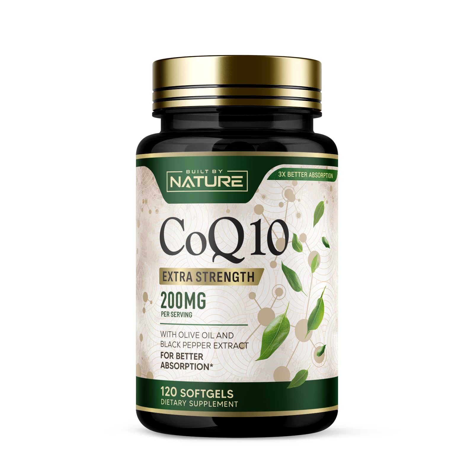 Built by Nature CoQ10 200 mg Coenzyme Q10 with Olive Oil and Black Pepper for High Absorption Supports Heart Health & Energy Antioxidant Supplement 2 Month Supply 120 Softgels