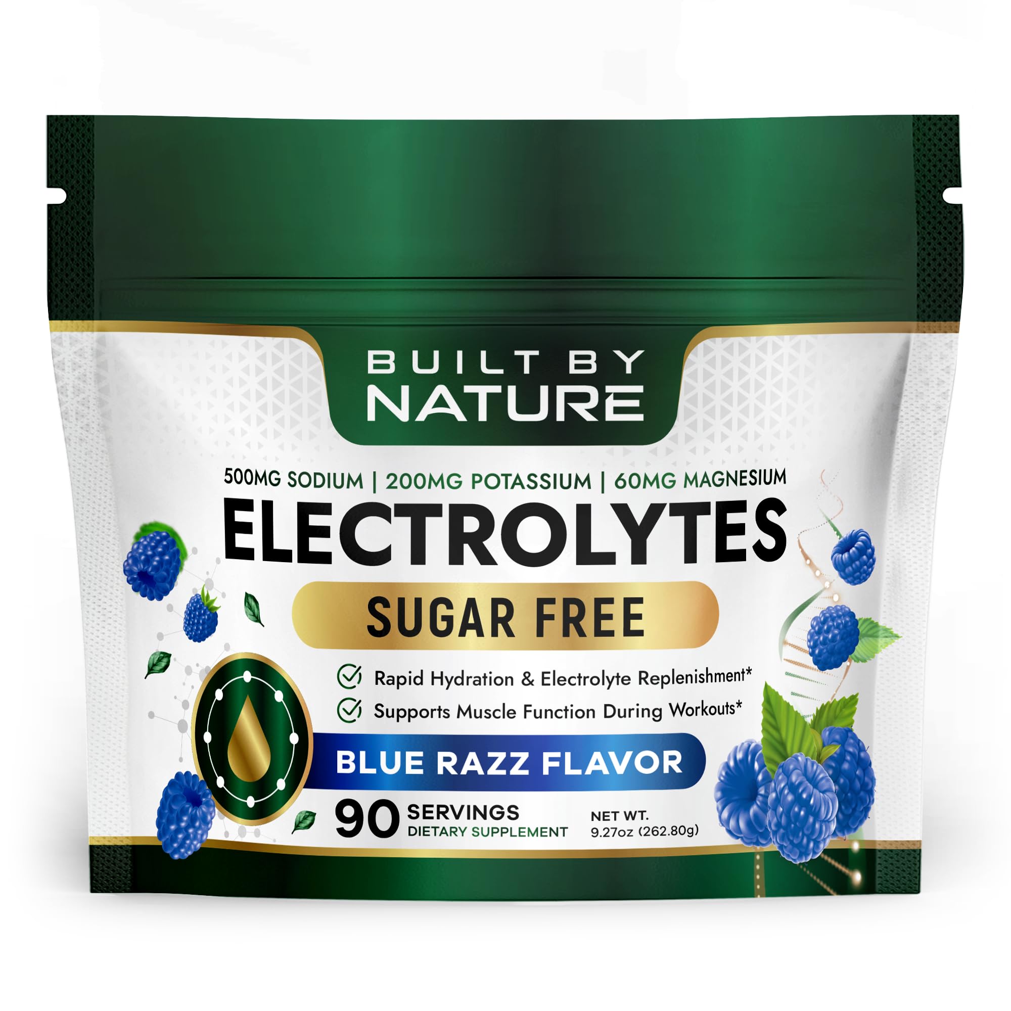 Built By Nature Electrolytes is your ultimate hydration solution — a sugar free electrolyte powder designed to help you recover faster, fight fatigue, and stay hydrated. With 90 servings of refreshing Blue Razz flavor, this electrolyte drink mix replaces electrolyte packets and hydration drinks. Each serving provides a precise balance of electrolytes — sodium, potassium, and magnesium — to help restore hydration, improve energy, and support muscle function. Perfect for workouts, sports, outdoor activities, or everyday hydration, this electrolytes powder is clean, convenient, and free from sugar, gluten, and unnecessary fillers. Whether you're looking for electrolyte packets, hydration powder, or a daily electrolyte drink mix, Built By Nature delivers what your body needs — hydration, energy, and recovery in one delicious scoop.Delicious Blue Razz Flavor – 90 Servings - Skip chalky or salty formulas — this electrolyte drink mix delivers smooth taste, long-lasting value, and clean ingredients for everyday hydration support. Premium Hydration Powder for Recovery - Formulated to help restore hydration, balance electrolytes, and fight fatigue — whether you're training hard, working outdoors, or need daily hydration drinks. Sugar Free Electrolyte Drink Mix - Blue Razz flavor electrolyte powder with zero sugar — the perfect electrolyte drink to replenish sodium, potassium, and magnesium without unnecessary carbs. Electrolytes Powder Packets Alternative - Enjoy 90 full servings in one tub — a cost-effective alternative to expensive electrolytes powder packets and hydration packets. Hydration Electrolyte Support - Stay energized and refreshed with Built By Nature Electrolytes — a sugar free electrolyte powder designed to support hydration, energy, and recovery for active lifestyles.