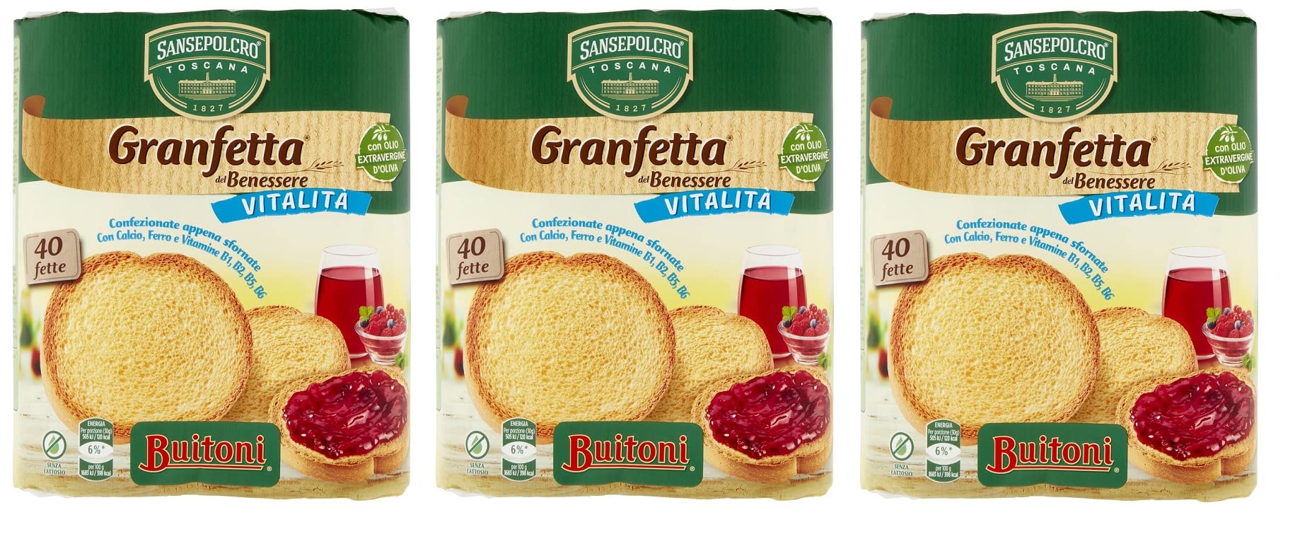 Buitoni Granfetta del Benessere Vitalità Lot de 3 biscottate 40 biscottes avec calcium, fer et vitamines 300 g