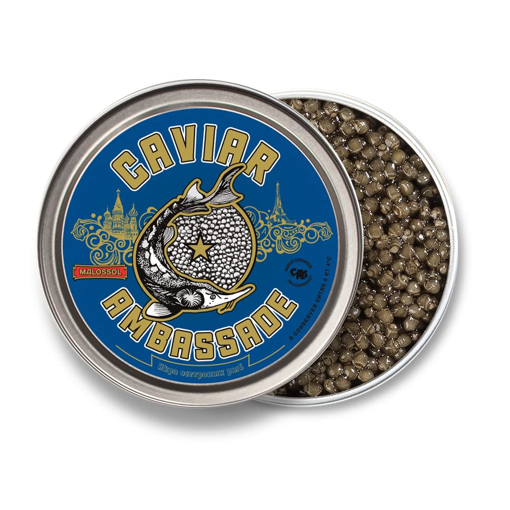 Best before end: 2 months guaranteed. A VARIED RANGE OF EGGS – Tasting caviar is a unique culinary experience. Caviar Ambassade offers you the chance to taste the three most renowned varieties of eggs: Baeri, Beluga, Oscietra, to take you on a journey through all the flavors, textures, and intensities that these dishes have to offer. CAVIAR AMBASSADE – Thanks to an exclusive partnership with a fish farm in Bulgaria, Caviar Ambassade offers you this exceptional Beluga caviar. The know-how in sturgeon farming, the passion of the breeders, and respect for fish and the environment are at the heart of our commitments. TASTING ADVICE - Remove your can of caviar 5 minutes before serving. Place it on a bed of ice to preserve its freshness throughout the tasting. Use a mother-of-pearl spoon to avoid breaking the grains and risking oxidation. Consume within 48 hours. REFRIGERATED DELIVERY – To guarantee fresh caviar delivered on the date of your choice, a customer service representative will contact you after your order to set the delivery date. Once received, place your box of caviar in the refrigerator and store it between 0 and 4 C for at least two months. BULGARIAN BELUGA CAVIAR – Beluga caviar comes from the Huso Huso sturgeon, the largest freshwater fish. This caviar comes from our partner farm located in Bulgaria. This caviar, with its melting texture and intense flavor, is characterized by large grains with a moderately dark color.DDM : 2 mois garantis. UNE GAMME D'ŒUFS VARIÉE – Déguster du caviar est une expérience culinaire unique. Caviar Ambassade vous propose de goûter aux trois variétés d'œufs les plus réputées : Baeri, Beluga, Osciètre, afin de vous faire voyager à travers toutes les saveurs, textures et intensités que ces mets ont à nous offrir. CAVIAR AMBASSADE – Grâce à un partenariat exclusif avec une ferme piscicole en Bulgarie, Caviar Ambassade vous propose ce caviar Beluga exceptionnel. Le savoir-faire dans l'élevage d'esturgeons, la passion des éleveurs et le respect du poisson et de l'environnement sont au centre de nos engagements. CONSEILS DE DÉGUSTATION - Sortir votre boîte de caviar 5 minutes avant de la servir. Disposez-la sur un lit de glace qui en préservera la fraîcheur tout au long de la dégustation. Préférez une cuillère mise en bouche en nacre qui ne brisera pas les grains et ne risquera pas l'oxydation. A consommer dans les 48h. LIVRAISON REFRIGEREE – Afin de vous garantir un caviar frais et livré à la date de votre choix, un agent de notre service client vous contactera suite à votre commande afin de définir la date de livraison. Une fois réceptionnée, mettez votre boîte de caviar au réfrigérateur et conservez-là entre 0 et 4 c durant deux mois minimum. CAVIAR BELUGA BULGARE – Le caviar Beluga provient de l'esturgeon Huso Huso, plus grand poisson d'eau douce. Celui-ci provient de notre élevage partenaire situé en Bulgarie. Ce caviar à la texture fondante et au goût intense, se caractérise par de gros grains à la couleur modérément foncée.