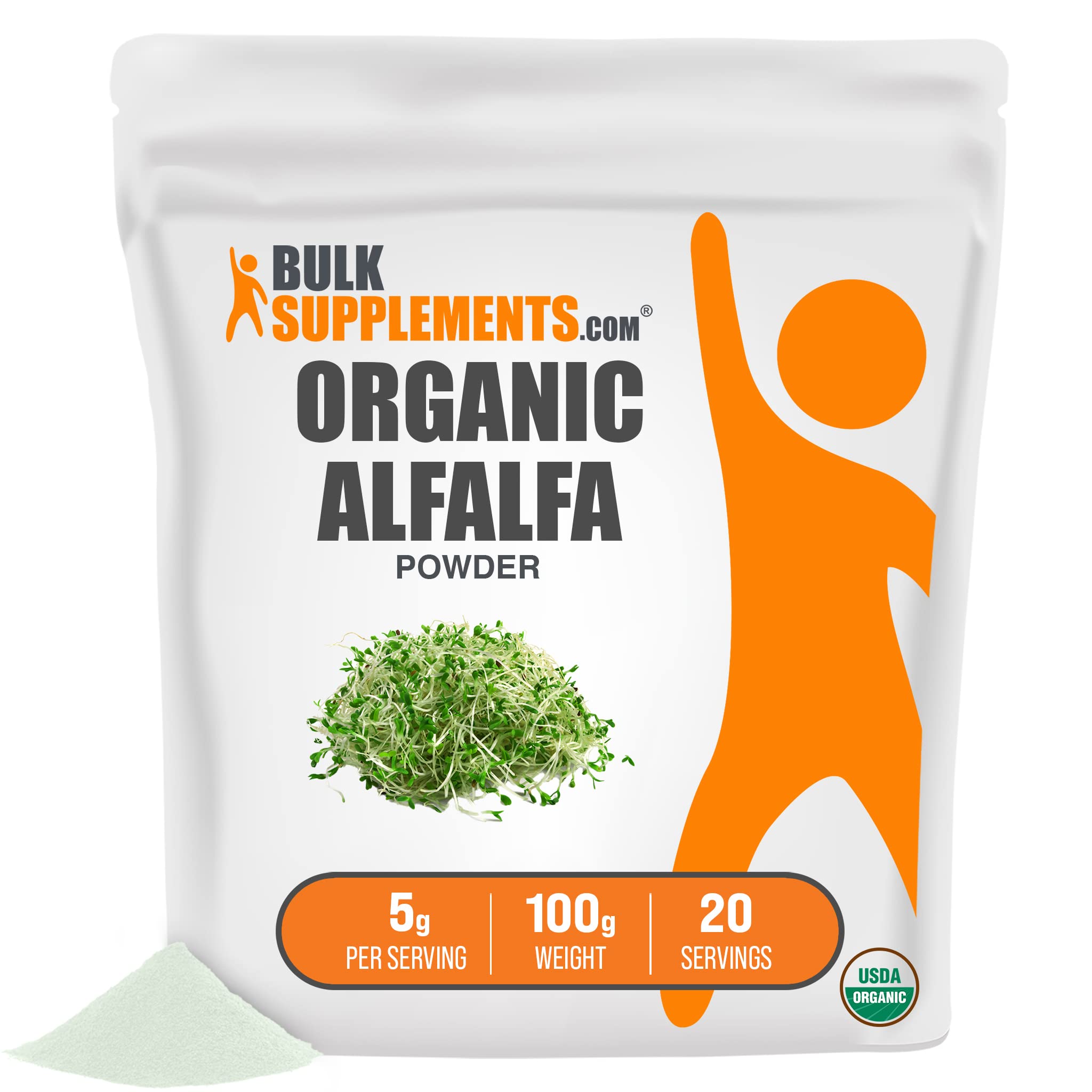 fiber content and helps aid in digestion and works to keep skin and hair healthy.* Its vitamins and minerals help to support your overall health. Our Alfalfa Powder, which is available as Organic Alfalfa Powder, is a clean and pure supplement and contains no fillers, additives or artificial flavors! It's also dairy free, soy free, gluten free and contains no added sugars!? High Quality - All products by BulkSupplements are manufactured according to cGMP Standards to ensure the highest quality for manufacturing, packaging, labeling, and holding operations. We’ve made a significant investment in our in-house lab so we can test our products at multiple stages during production. We third party test products, procedures and equipment when required to ensure compliance, standards and consistency. ? Pure and Natural Supplement - Organic Alfalfa Powder is a nutrient-rich plant that gives an array of health benefits.* It's a good source of