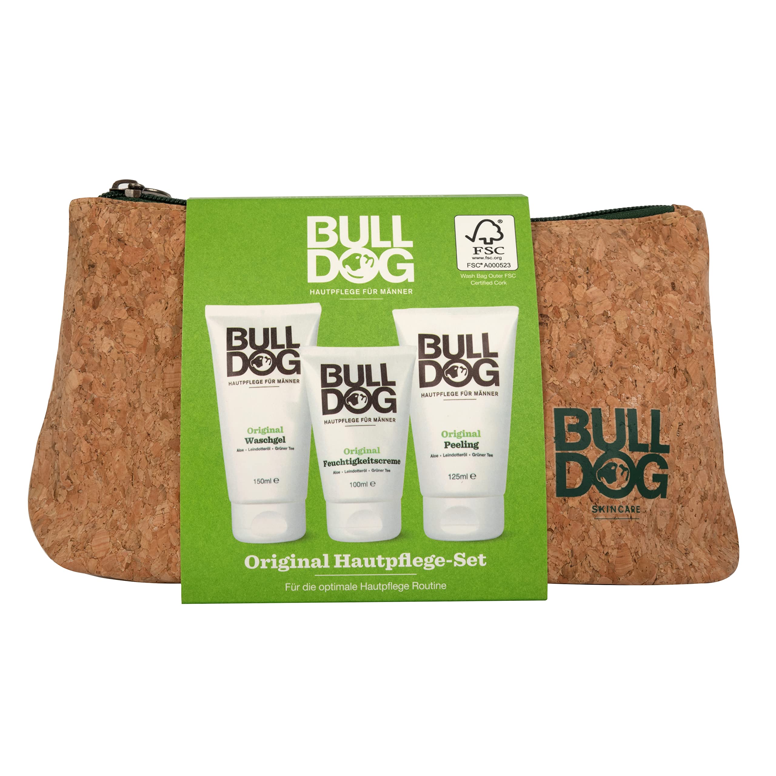 Bulldog Gift set for men with exfoliant, wash gel and moisturiser. Because not all scrubbing should be a chore. This scrub contains aloe vera, camelina oil and green tea. It has been specially developed to remove dead skin particles and leave a smooth, thoroughly cleansed skin feeling. Moisten face with warm water. Gently massage a small amount of scrub into the skin and rinse well. Then apply original moisturiser. Looks of truth in the eye: you could probably use a washing gel well. This wash gel contains aloe vera, camelina oil and green tea. It does not dry out the skin and has been specially developed to clean the skin - it looks visibly pure and feels refreshed. Lather on wet skin and rinse. Use morning and evening. Then apply original moisturiser. The moisturiser your face deserves (and absolutely needs). This moisturiser contains aloe vera, camelina oil and green tea. It has been specially designed to moisturise the skin without leaving a greasy feeling. After use, the skin also looks healthier and feels softer. Use morning and evening. Apply evenly to face and neck after facial cleansing.The plastic-free outer packaging is made entirely of World Land Trust Carbon Balanced Paper. This tube contains more than 62 PCR plastic (post-consumer recycling) and more than 27 vegetable plastic made from renewable sugar cane. 94 of natural origin the ingredients of natural origin contain 50 material from natural sources. Clean Refresh. 24 hour moisture supply. Perfect as a gift for the Christmas stocking or under the Christmas tree.