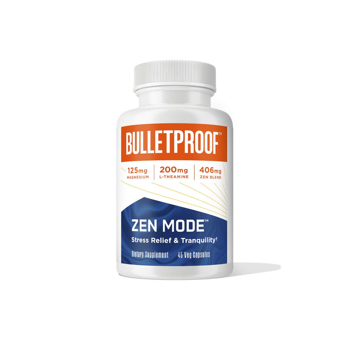 At Bulletproof, we only use science-backed ingredients to deliver maximum benefits. For relaxation, take three capsules daily. Naturally sugar-free, gluten-free, non-GMO, soy-free, no added dyes and lab-tested for purity and potency. Relax with vitamin B6, magnesium, L-theanine, 5-HTP, GABA and a calming blend of holy basil and ashwagandha. Zen Mode helps you reach new levels of calm with adaptogenic herbs and nutrients to curb stress and support improved focus. Contains one 45-count bottle of Bulletproof Zen Mode stress relief and tranquility capsules.