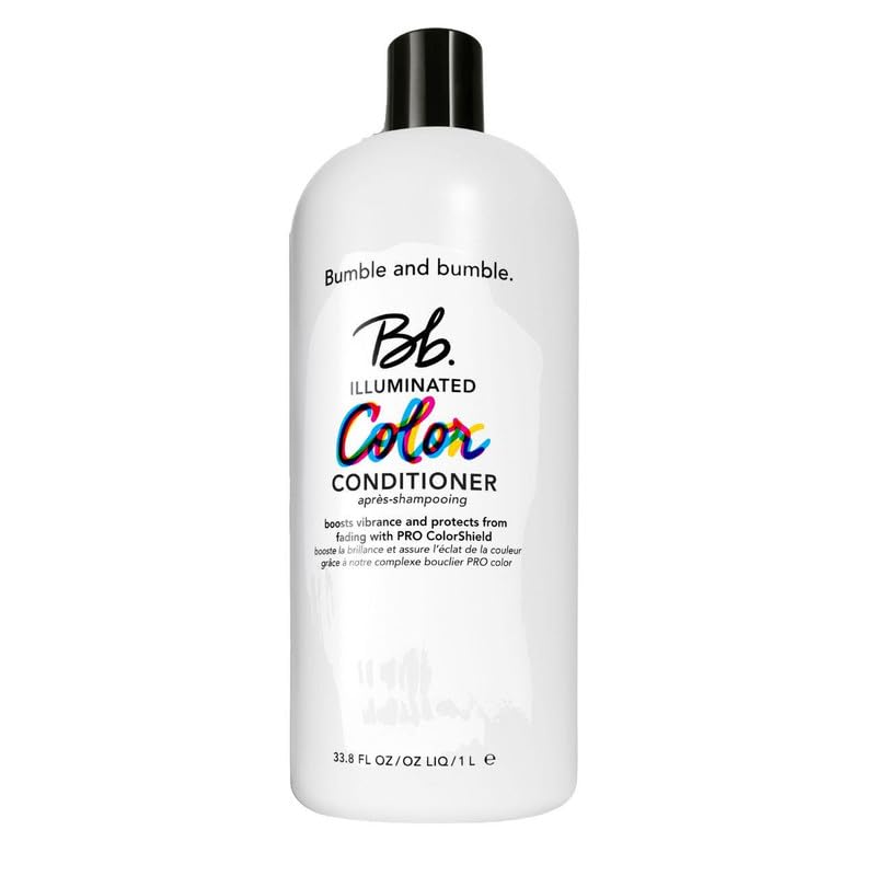 Bumble and Bumble Illuminated Color Conditioner - 100ml Salon Sized Bottle: 4X color-safe hydration and 90 vibrancy instantly vs. untreated hair. Live in vibrant color with amplified vibrancy and shine that improves the appearance of color-treated hair. Formulated with our PRO ColorShield technology, this pigment-retaining moisturizing conditioner protects hair from color fading. Plus, it reduces frizz and flyaways and smooths seals the cuticle for bright, locked-in color. PRO ColorShield technology, designed with protective polymers, conditioners and vitamin E, forms a protective shield that helps lock in your color. Contains Kukui Seed Oil to hydrate strands and add shine. Balances the hair's pH to seal the cuticle to protect color vibrancy.Ideal for colored hair. All diameters: fine, medium, thick hair.Bumble and Bumble Verlichte Color Conditioner 1000ml 1 liter Bumble and Bumble Illuminated Colour Conditioner - 100ml Salon Sized Bottle: 4X kleurveilige hydratatie en 90 levendigheid onmiddellijk versus onbehandeld haar. Leef in levendige kleuren met versterkte levendigheid en glans die het uiterlijk van gekleurd haar verbetert. Geformuleerd met onze PRO ColorShield-technologie, beschermt deze pigmentbehoudende hydraterende conditioner het haar tegen kleurvervaging. Bovendien vermindert het kroezen en flyaways en maakt het glad verzegelt het de nagelriem voor een heldere, vergrendelde kleur. PRO ColorShield-technologie, ontworpen met beschermende polymeren, conditioners en vitamine E, vormt een beschermend schild dat helpt om uw kleur vast te houden. Bevat Kukui-zaadolie om de strengen te hydrateren en glans toe te voegen. Balanceert de pH van het haar om de nagelriem af te dichten om de levendigheid van de kleur te beschermen.Ideaal voor gekleurd haar. Alle diameters: fijn, middelgroot, dik haar.