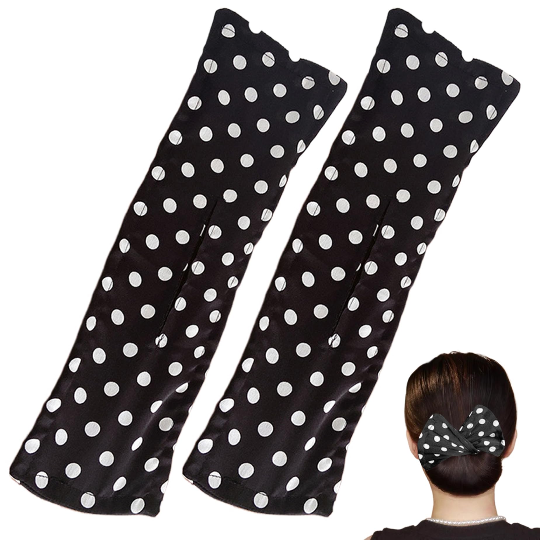 Description: Our Hair Bun Maker set includes two pieces of hair bun rollers, providing you with the simplest way to create beautiful buns and French hairtypes effortlessly. Elevate your hairtype game with ease using these foam hair bun shaper twisters. Create a variety of chic hairtypes including hair buns, donut buns, sock buns, ballet buns, French twists, updos, and more. Perfect for DIY heatless curls and waves. From casual wear to special events, these hair bun rollers are your go-to solution for stylish hairdos. Whether you're at work, school, or hitting the gym, these lightweight hair bun makers provide convenience and type without any hassle. Features:. Hair Bun Maker. -Color: Black and white. -Material: Crystal satin, iron. -Size: about 35x11 cm/13.78x4.33 inch. Note: Manual measurement, please allow slight errors on size. The colors may exist slight difference due to different screens. Package Including 2 * Hair Bun MakerSimple Braid Maker: Transform your hair into elegant braided hairtypes with ease using our hair bun rollers. Create intricate braids and chic updos for any occasion without hassle. Versatile Usage: Whether you have long or thick hair, our hair bun rollers are designed to accommodate various hair types, making them suitable for women with different hair textures and lengths. Whether it's a theme party, wedding, anniversary, date night, concert, or everyday activities, our versatile hair bun roller effortlessly complements any look. Easy to Use: Roll the hair bun maker underneath for layered hair, ensuring to tighten the maker securely after looping your ponytail through to achieve a firm grip. As you roll the bun maker along the length of the ponytail, tuck in any loose hair, and use bobby pins to secure any strands that may fall out. Long-lasting Performance: Made from quality velvet stain and iron, our hair bun maker can be used repeatedly without losing its shape or form. Enjoy its longer service life and effortlessly achieve a casual hairtype that instantly makes your hair appear fuller. Convenient Hair Styling: Say goodbye to complicated hair styling routines! Our hair bun roller set allows you to effortlessly type your hair in minutes, saving you time and effort while achieving salon-quality results.