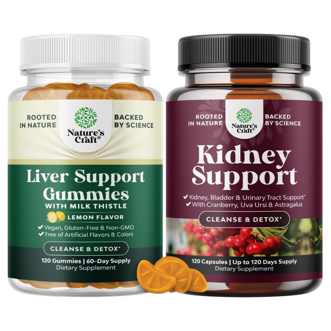 Natures Craft quality - We're proud to be a leading name in health supplements and we are committed to providing consumers like you with pure and responsibly-produced products you can trust. URINARY TRACT BLADDER WELLNESS – This kidney supplement is crafted with botanical extracts that help flush out impurities, support urinary flow, and maintain bladder health. Suitable bladder support for women men, it's a natural choice for promoting urinary balance. ADVANCED KIDNEY CLEANSE DETOX SUPPORT – Maintain optimal kidney function with this high-potency herbal kidney health supplement, designed to support natural detox, fluid balance urinary tract health. A gentle yet effective bladder control supplements to help your kidneys function at their best. Milk Thistle Complex - Our liver support gummies for men and women are powered by milk thistle and other protective antioxidants to help maintain normal liver function and promote immunity. Tasty Liver Cleanser - Promote stronger functioning and cleansing with our unique delicious and nutritious liver gummies enriched with artichoke and turmeric extracts for liver care you can trust.