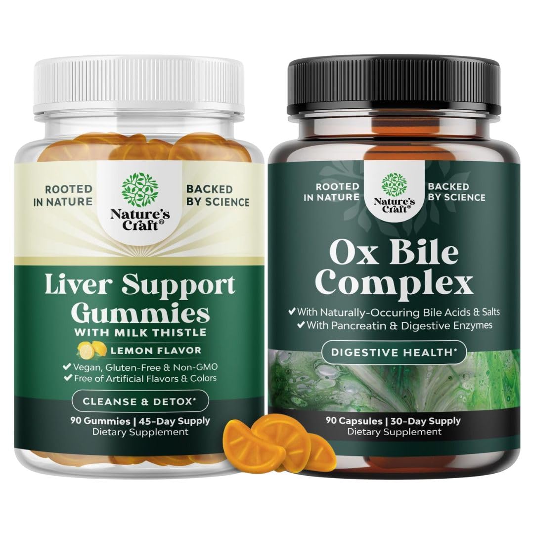 Natures Craft quality - We're proud to be a leading name in health supplements and we are committed to providing consumers like you with pure and responsibly-produced products you can trust. PROMOTES GUT PANCREAS HEALTH – Our comprehensive digestive enzymes for women men support optimal digestion and pancreas function, helping to break down fats, proteins, and carbohydrates for improved gut balance, reduced bloating, and enhanced nutrient uptake. ADVANCED ENZYMES FOR DIGESTION – Our pancreatic enzymes are designed for individuals with no gallbladder or compromised bile production. These ox bile digestive enzymes provide enzymatic support to aid fat digestion, nutrient absorption, and digestive comfort for both men and women. Milk Thistle Complex - Our liver support gummies for men and women are powered by milk thistle and other protective antioxidants to help maintain normal liver function and promote immunity. Tasty Liver Cleanser - Promote stronger functioning and cleansing with our unique delicious and nutritious liver gummies enriched with artichoke and turmeric extracts for liver care you can trust.