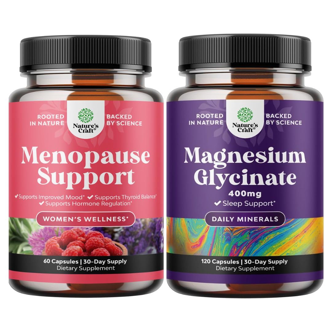 Natures Craft quality - We're proud to be a leading name in health supplements and we are committed to providing consumers like you with pure and responsibly-produced products you can trust. Magnesium Mineral Supplements - Enhance your wellness with magnesium 400 mg for one of the most versatile minerals which may help improve the body's natural process and support immunity. Extra Strength Magnesium for Sleep - Try our chelated magnesium for sleep so you can rest better and wake up more refreshed thanks to the relaxing properties of this essential mineral. RELIEVES NIGHT FLASHES, MOOD SWINGS NIGHT SWEATS – Our menopause supplements help regulate hormonal fluctuations, promoting cooling comfort, better sleep, emotional stability, and increased energy levels during perimenopause and menopause. NATURAL MENOPAUSE SUPPORT FOR HORMONAL BALANCE – Our menopause supplements for women are designed to help balance hormones, reduce discomfort, and promote overall well-being. This herbal menopause relief supplement provides ease from hot flashes, night sweats, mood swings irritability.
