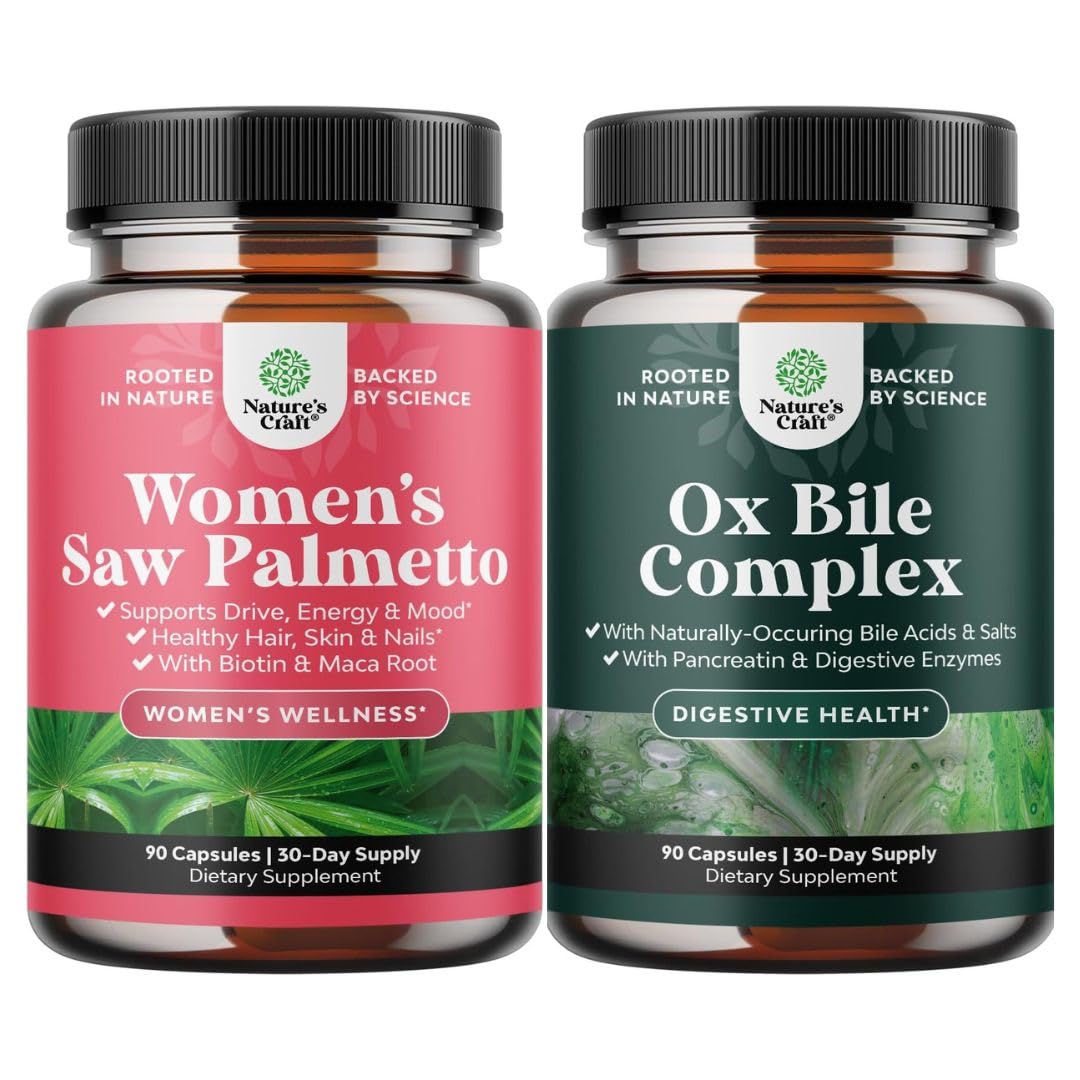 Bundle of Extra Strength Saw Palmetto for Women 500mg - Hair Vitamins with Maca Root & Biotin and Digestive Enzymes with Ox Bile with Trypsin Papain & Bromelain Enzyme for Pancrease Cleanse & Detox