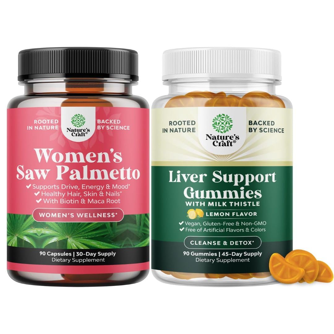 Bundle of Extra Strength Saw Palmetto for Women 500mg - Hair Vitamins with Maca Root & Biotin and Herbal Liver Detox Gummies - Milk Thistle with Artichoke Extract Turmeric Curcumin & L-Carnitine