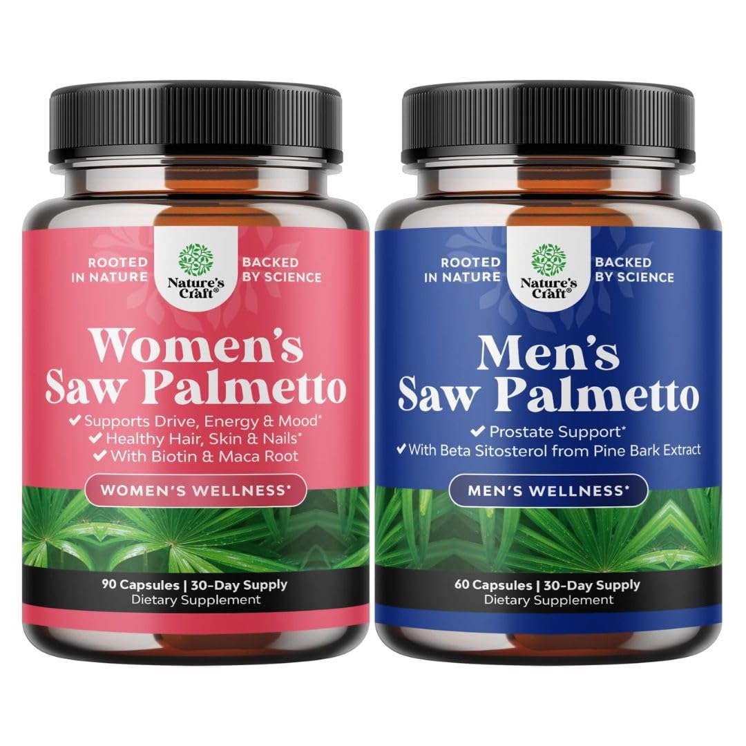 Bundle of Extra Strength Saw Palmetto for Women 500mg - Vitamins for Hair Loss with Maca Root & Biotin and Saw Palmetto for Men with Beta Sitosterol - Prostate Support & Better Bladder Control