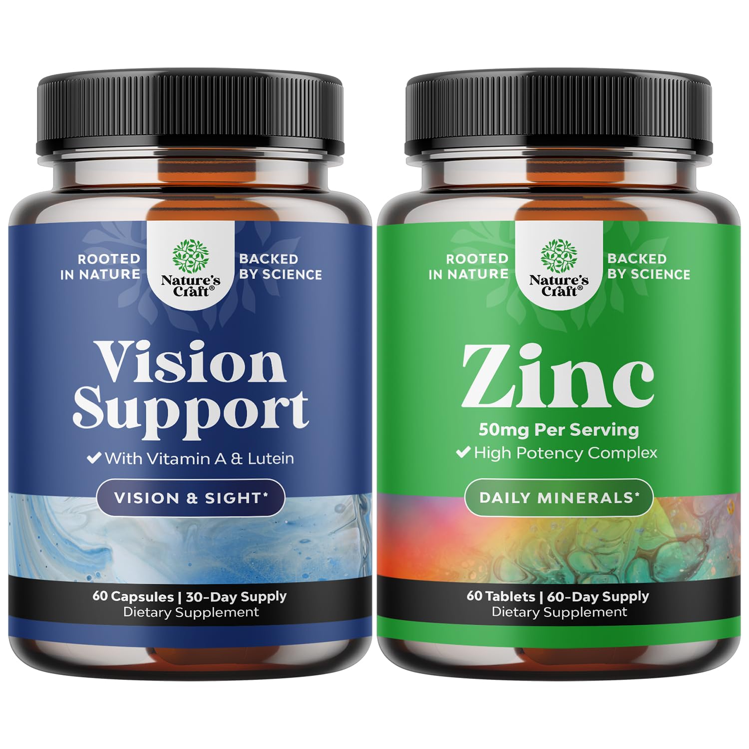 Natures Craft quality - We're proud to be a leading name in health supplements and we are committed to providing consumers like you with pure and responsibly-produced products you can trust. Zinc immune for adults - Say hello to safe and effective immune support that can provide plus keep your immune system functioning properly without needing to swallow a bunch of tablets everyday!. Zinc supplements - Try our zinc 50mg supplement and feel the difference with a pure zinc vitamin designed with your wellbeing in mind and feel the benefits like enhanced hair skin and nail growth. Unique Complex - Forget about those simple eye support products and try our eye care supplement with minerals amino acids bioflavonoids and herbal extracts and vision vitamins for eye support. Superstar Ingredients - Our specialized eye care supplement is packed with some of the most nourishing vitamins for eyes including Glutathione Lutein Vitamin A Quercetin and other eye health vitamins.
