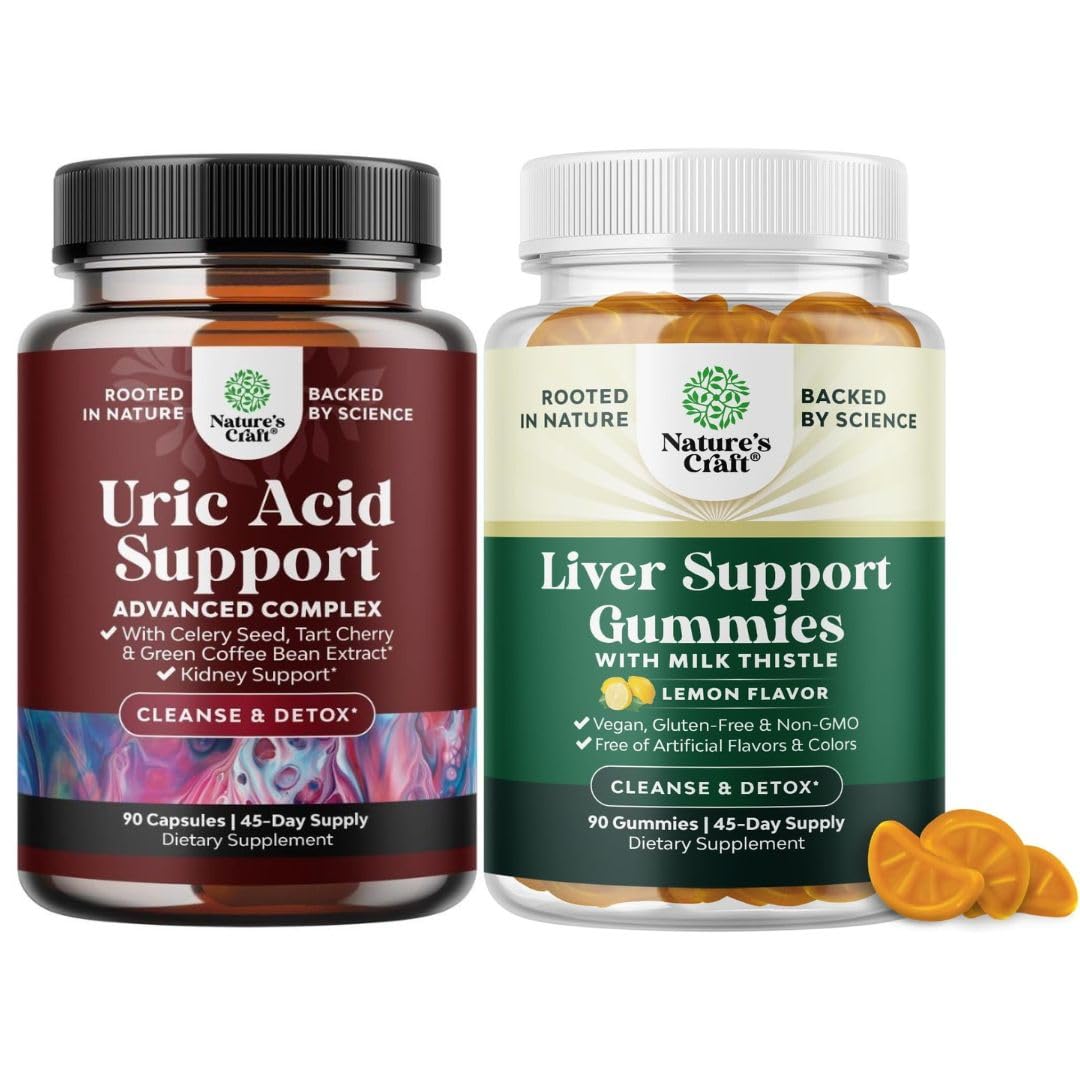 Natures Craft quality - We're proud to be a leading name in health supplements and we are committed to providing consumers like you with pure and responsibly-produced products you can trust. Milk Thistle Complex - Our liver support gummies for men and women are powered by milk thistle and other protective antioxidants to help maintain normal liver function and promote immunity. Tasty Liver Cleanser - Promote stronger functioning and cleansing with our unique delicious and nutritious liver gummies enriched with artichoke and turmeric extracts for liver care you can trust. PROMOTES HEALTHY URIC ACID LEVELS MOTION – Our uric acid support formula with green coffee extract helps maintain healthy uric acid levels, eg discomfort in joints, hands, feet, and muscles. This uric acid supplement also supports kidney function for optimal detox. ADVANCED URIC ACID CLEANSE JOINT SUPPORT – Designed to help flush excess uric acid, support joint comfort, and promote kidney health, this powerful daily detox kidney support supplement with green coffee beans is ideal for men and women looking for natural help and balance.