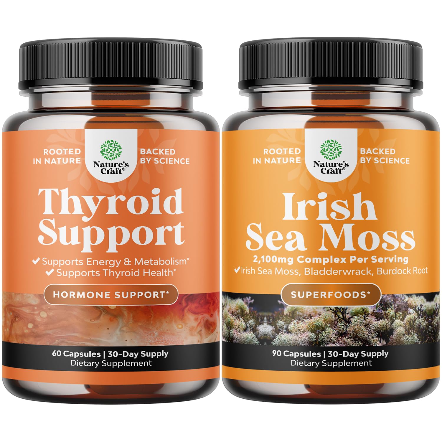 Bundle of Herbal Thyroid Support for Weight Loss and Organic Irish Sea Moss Capsules - Advanced Metabolism Booster Energy - with Burdock Root Superfood Blend for Immune Support
