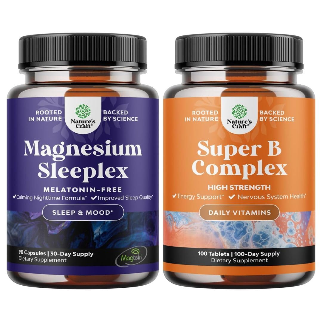 Natures Craft quality - We're proud to be a leading name in health supplements and we are committed to providing consumers like you with pure and responsibly-produced products you can trust. Brain boost - B vitamin complex tablet work as a natural brain supplement for focus, energy, memory clarity thanks to our B1 vitamin thiamine vitamin B5 pantothenic acid and vitamin B12 complex. Immune booster for adults - Try our B complex vitamin immune system booster fueled by vitamin B6 for immunity support due to B6 vitamins and other B vitamins regulating immune function in the brain. SUPPORTS MOOD, SLEEP COGNITIVE FUNCTION – Our magnesium supplement for women men is designed to help you fall asleep faster, stay asleep longer wake up refreshed. This natural magnesium sleep aid also supports mood balance, relaxation, memory, and cognitive clarity for both men and women. ADVANCED MAGNESIUM SLEEP RELAXATION SUPPORT – Our magnesium supplement for sleep is formulated to promote deep, restful sleep and relaxation. This high-absorption tri magnesium supplement helps calm the mind, ease stress improve overall sleep quality without melatonin.